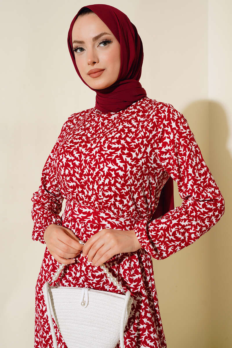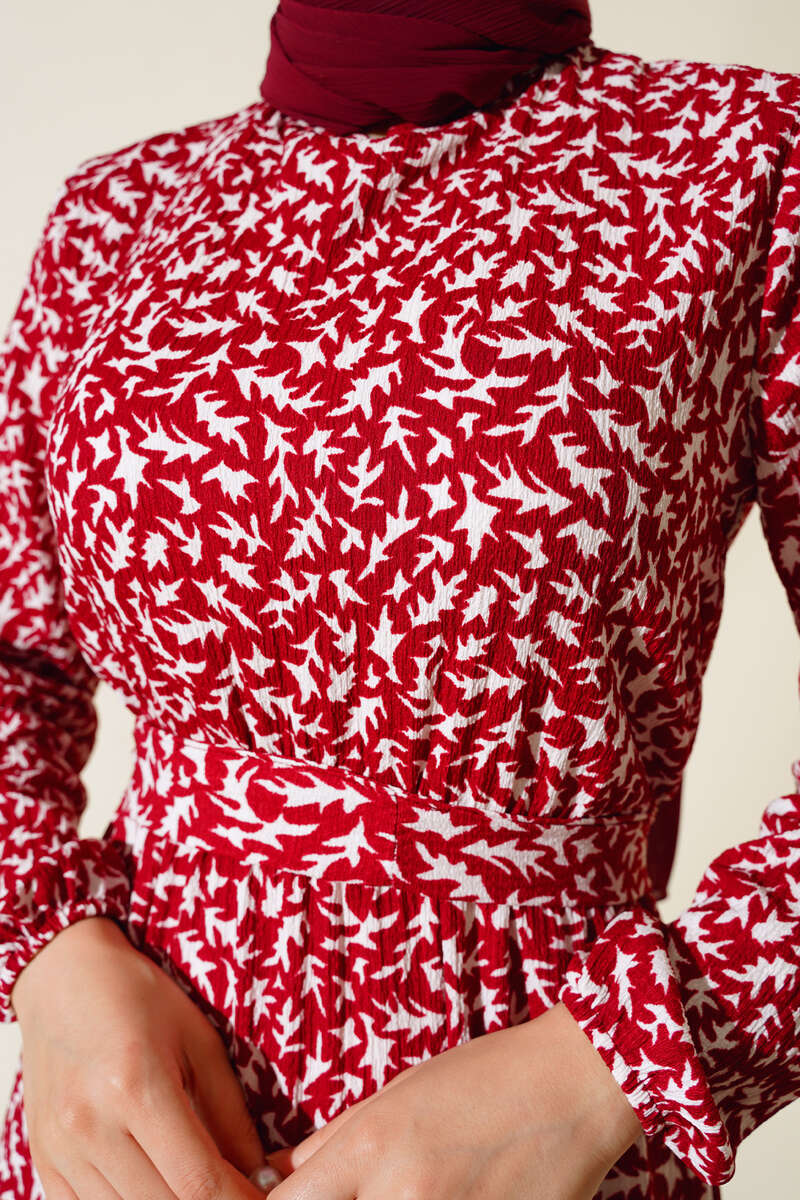 Yeni sezon elbise modelimiz sizlerle beraber. Desenli elbise modelimiz kloş modeldir. Belden kendinden desenli kuşağı bulunmaktadır. Kol bilekleri lastiklidir. Bürümcük elbise modelimizin renk seçenekleri mevcuttur.