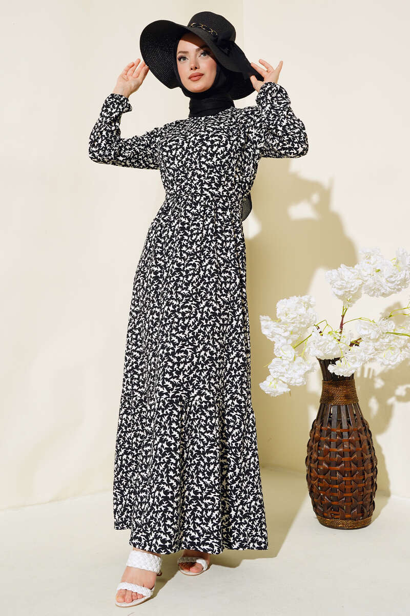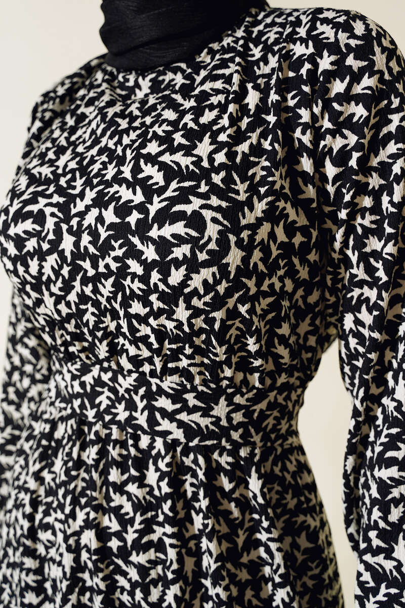 Yeni sezon elbise modelimiz sizlerle beraber. Desenli elbise modelimiz kloş modeldir. Belden kendinden desenli kuşağı bulunmaktadır. Kol bilekleri lastiklidir. Bürümcük elbise modelimizin renk seçenekleri mevcuttur.
