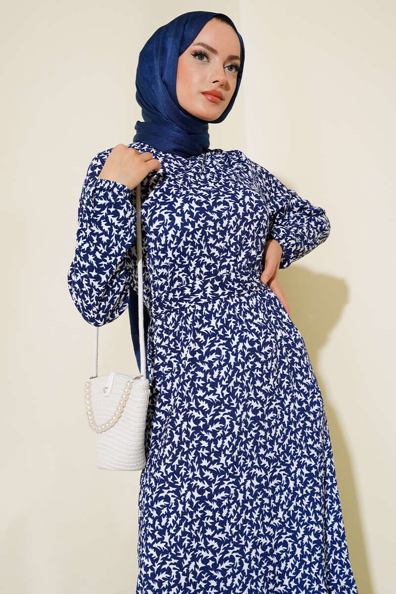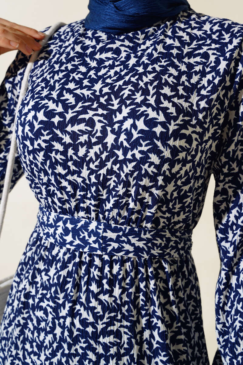 Yeni sezon elbise modelimiz sizlerle beraber. Desenli elbise modelimiz kloş modeldir. Belden kendinden desenli kuşağı bulunmaktadır. Kol bilekleri lastiklidir. Bürümcük elbise modelimizin renk seçenekleri mevcuttur.