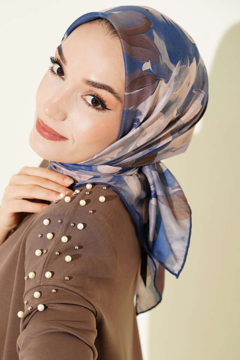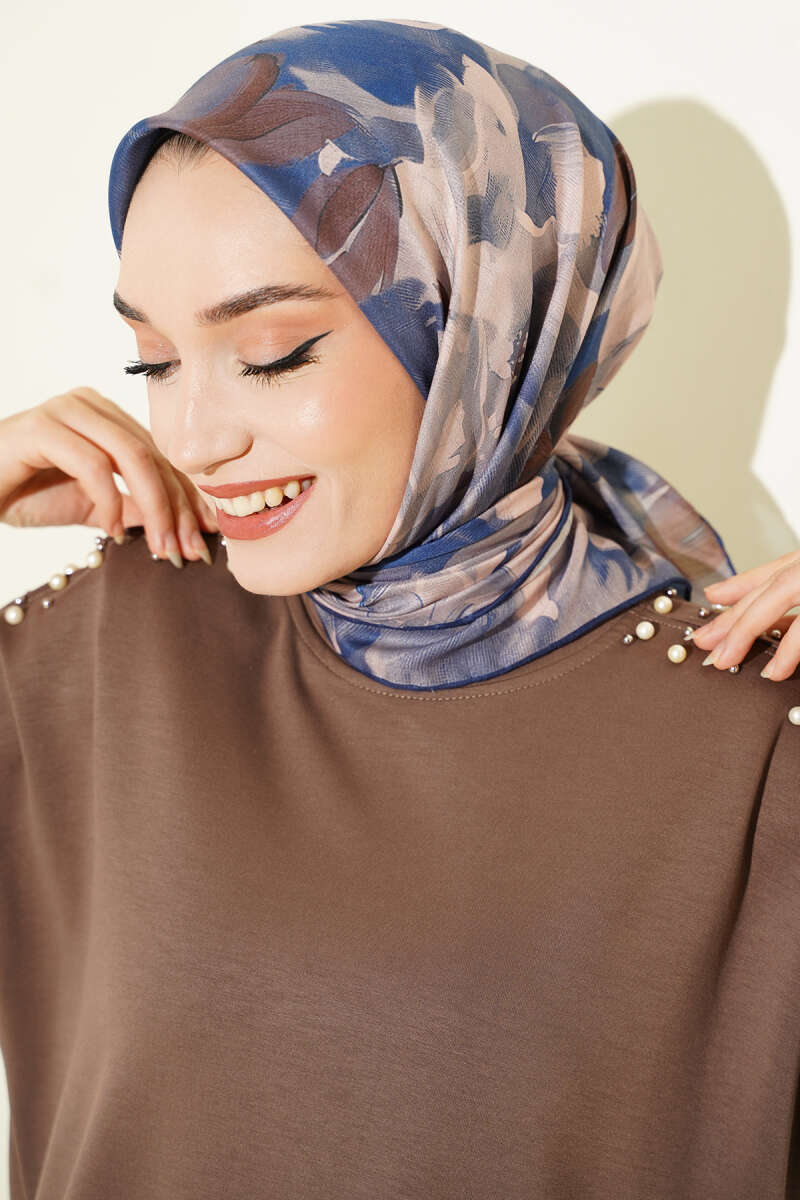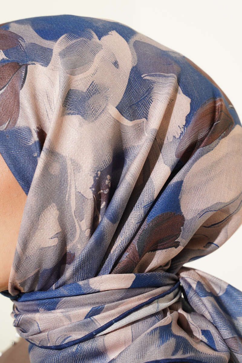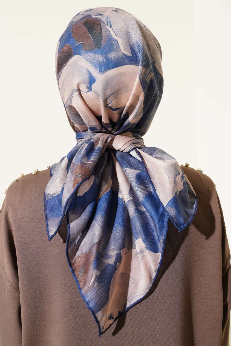 Desenli Demore Lacivert Serisi Eşarp Asorti 4