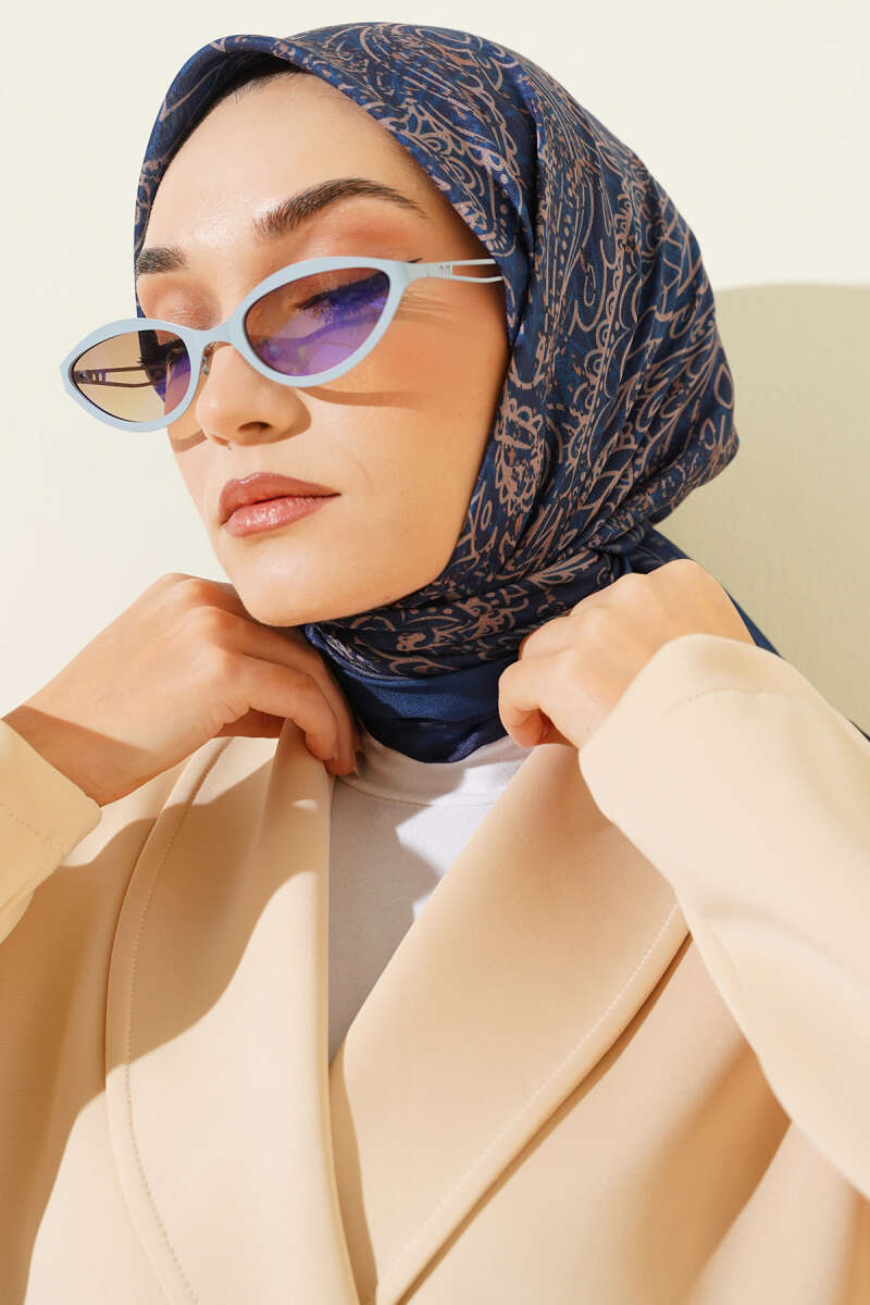 Desenli Demore Lacivert Serisi Eşarp Asorti 7