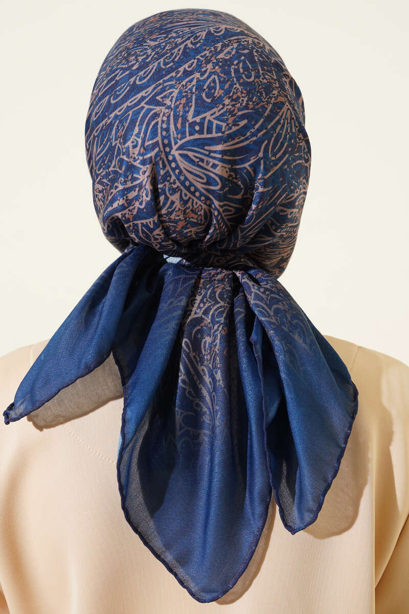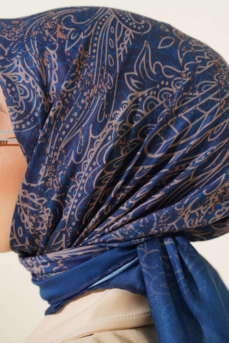 Desenli Demore Lacivert Serisi Eşarp Asorti 6