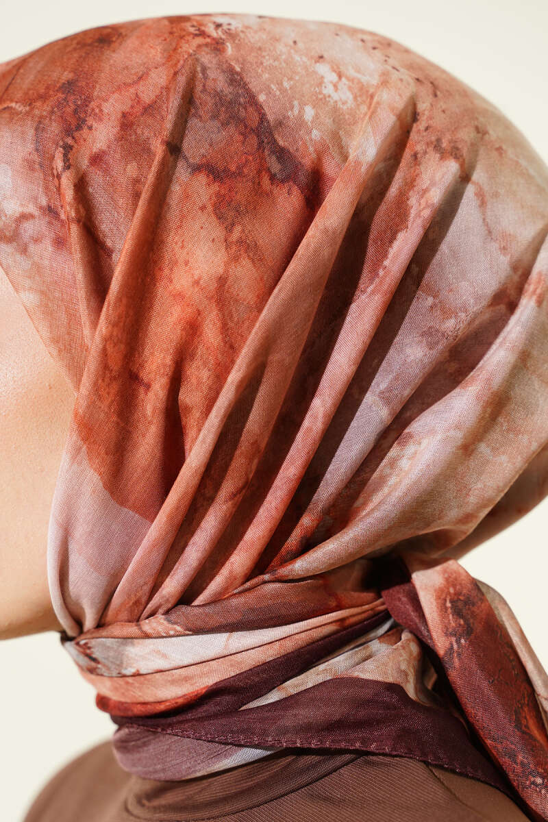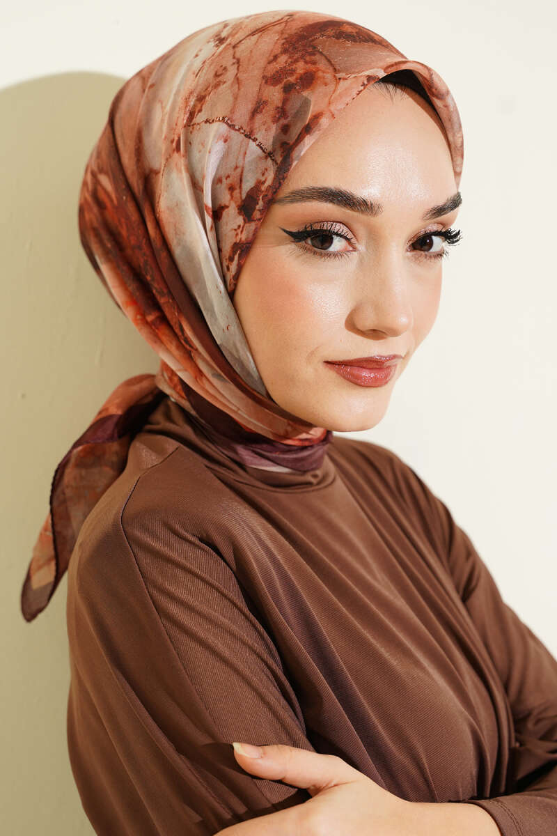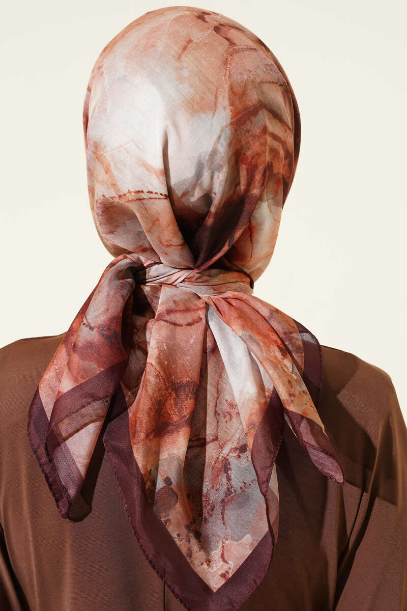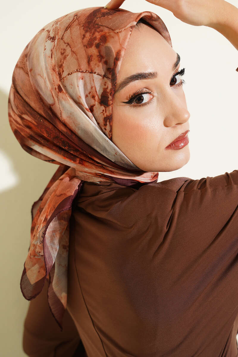 Desenli Dijital Baskılı Eşarp Acı Kahve