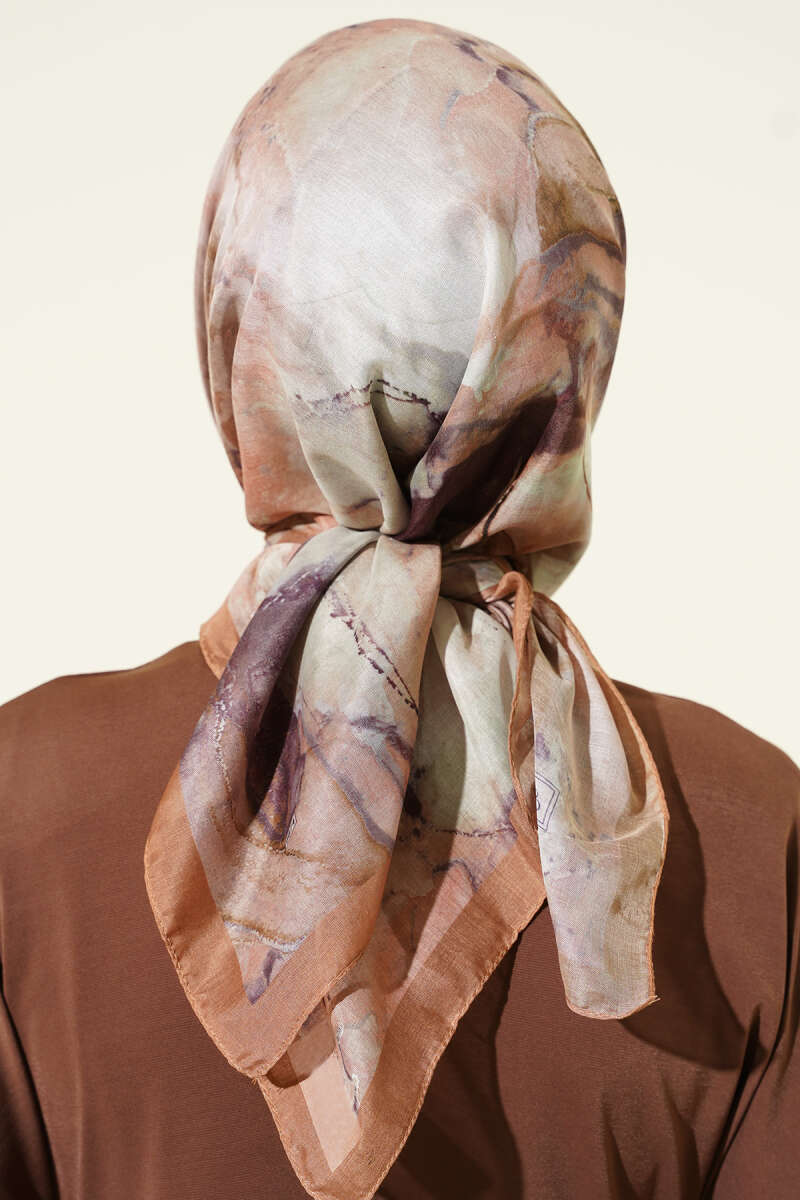 Desenli Dijital Baskılı Eşarp Gül Kurusu