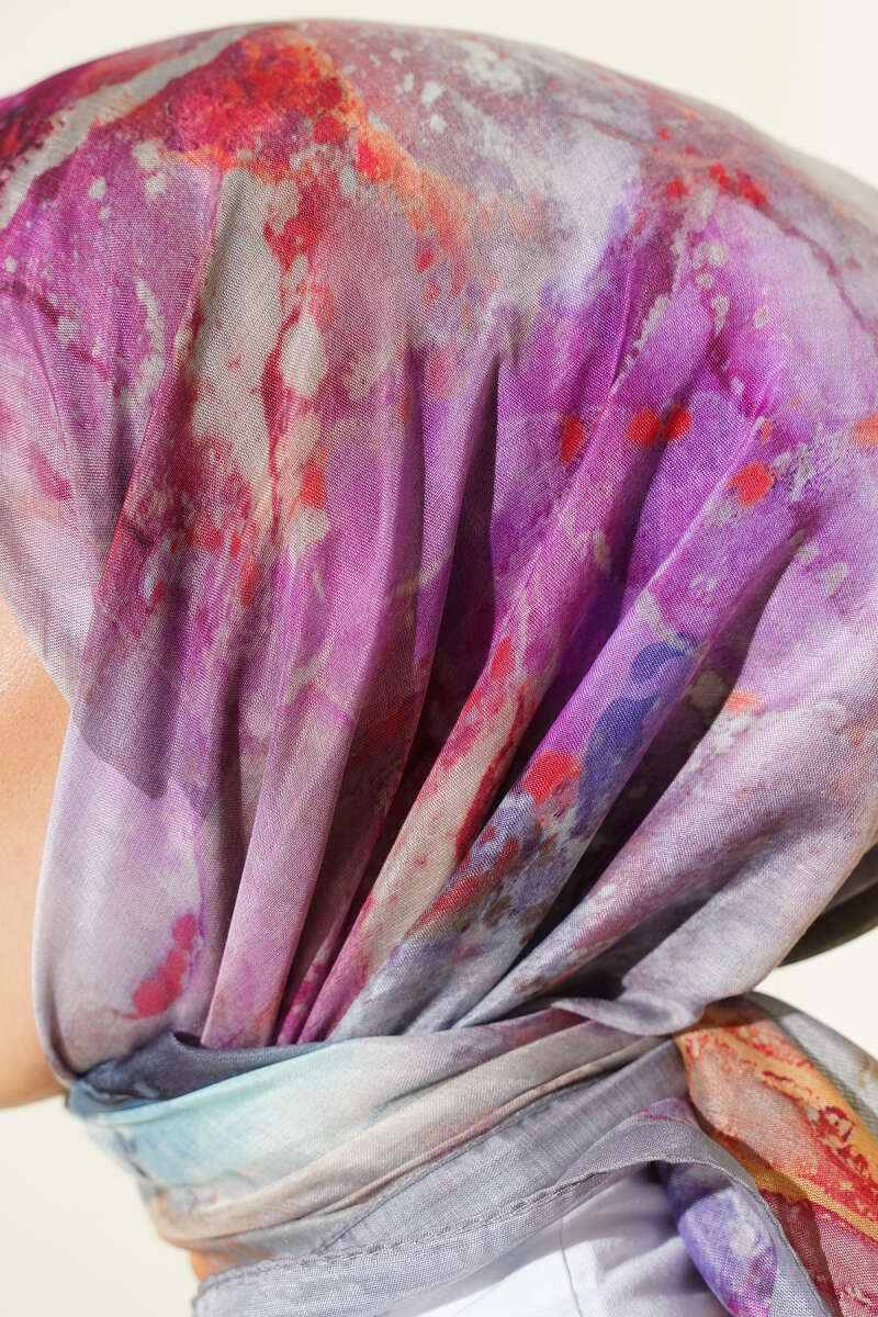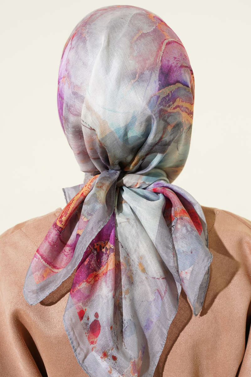 Desenli Dijital Baskılı Eşarp Gri