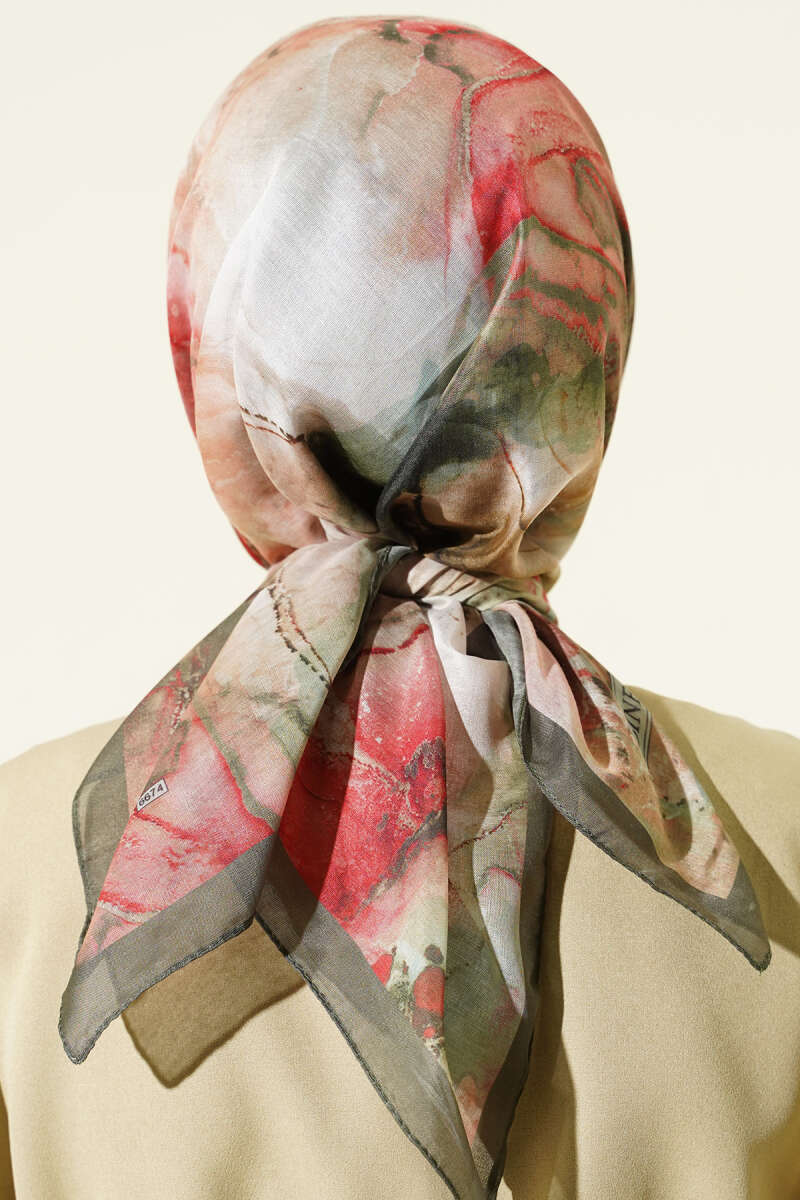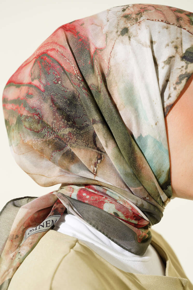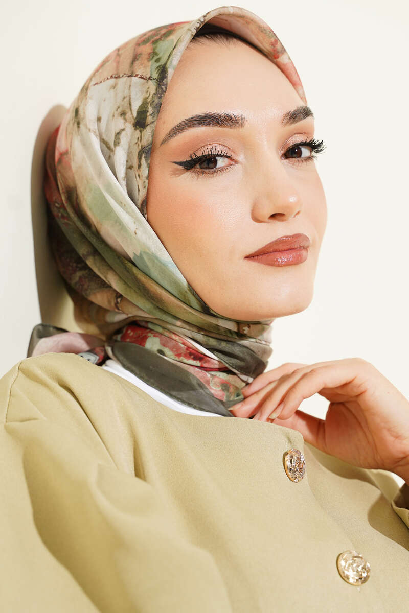 Desenli Dijital Baskılı Eşarp Haki