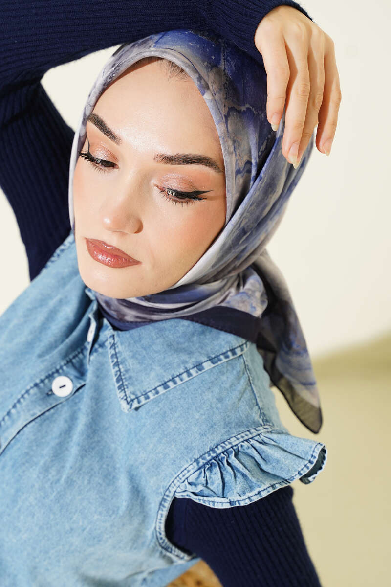 Leopar Desenli Soft Eşarp Lacivert