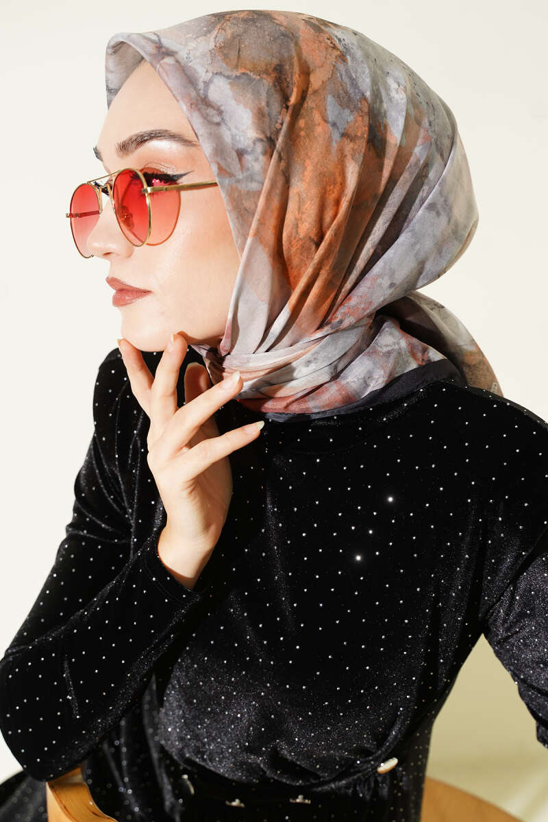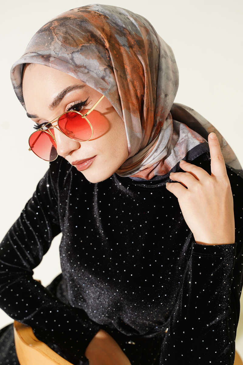 Leopar Desenli Soft Eşarp Siyah Gri