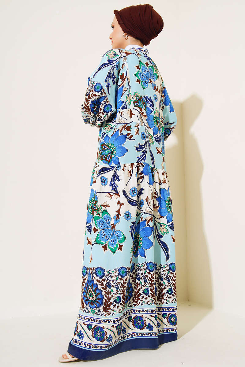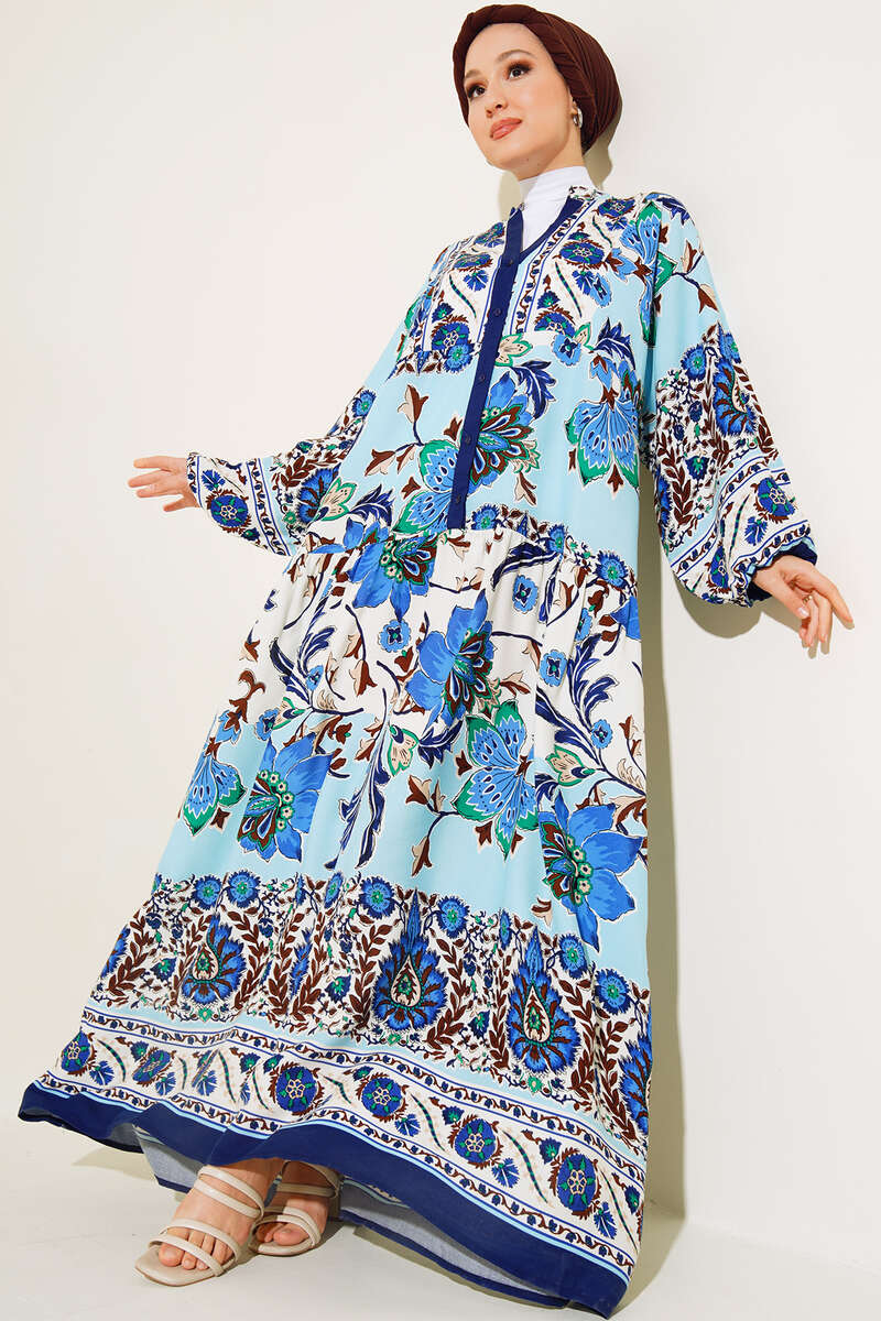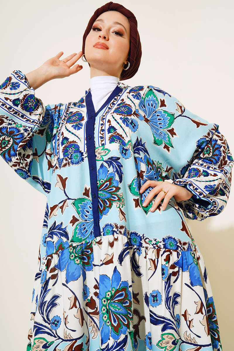Yeni sezon elbisemiz desenleriyle favoriler arasındadır. Düğme patlı elbisemizin bilekleri lastiklidir. Şık ve sporitif bir görünüm sunan elbisemiz dolabınızın vazgeçilmez parçası olacaktır.