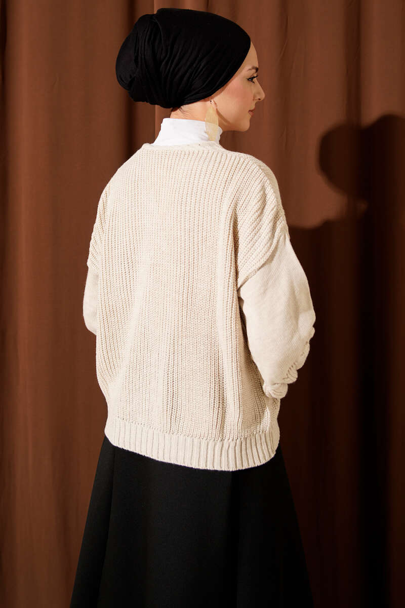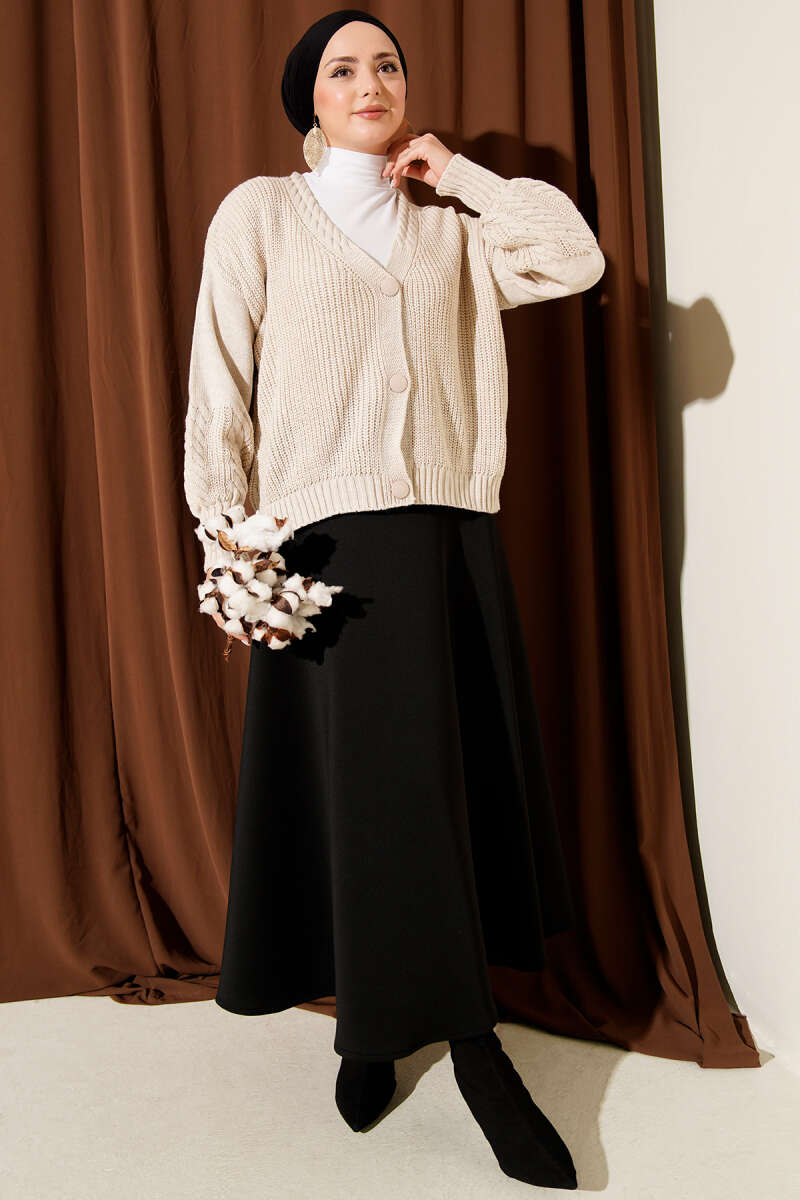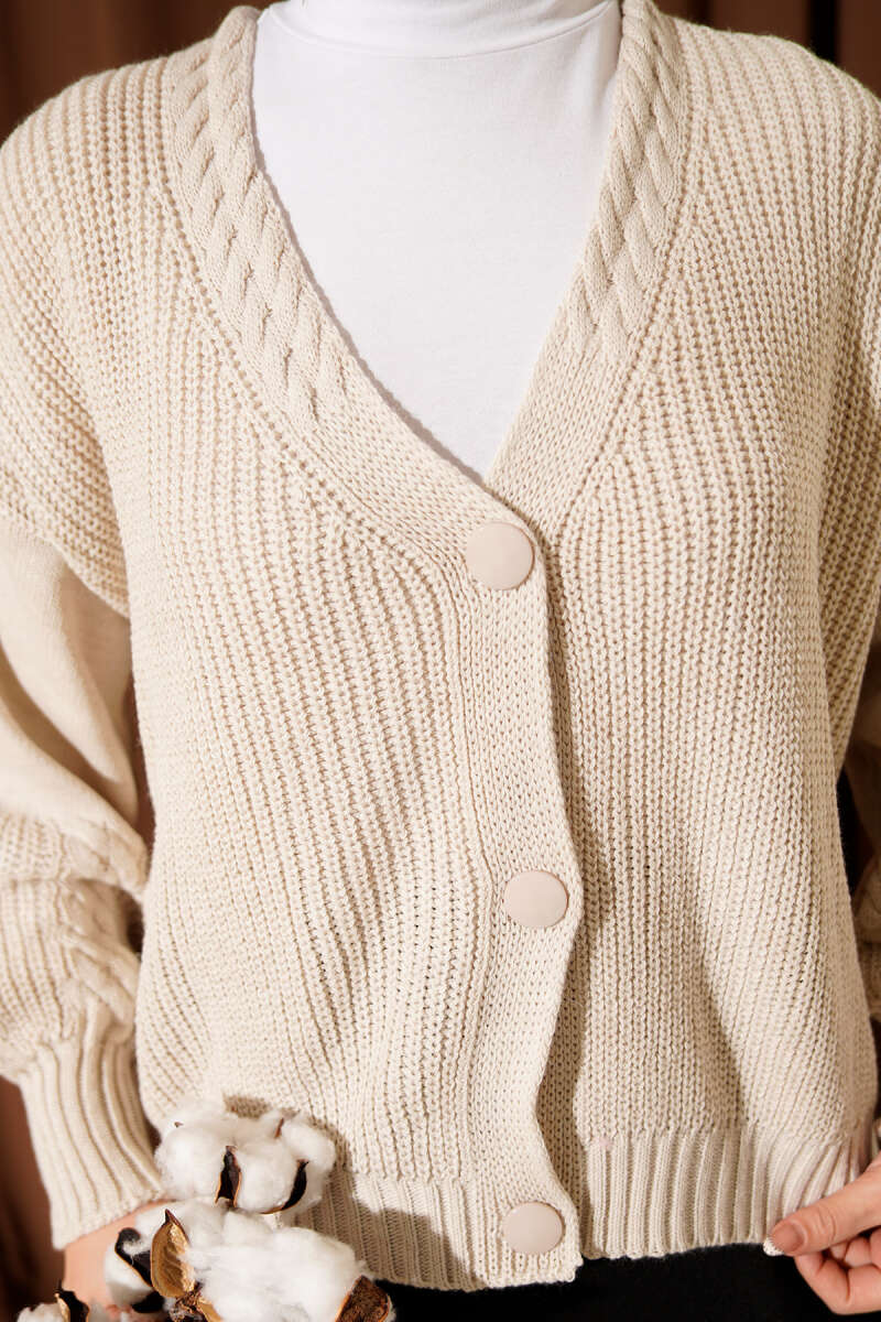 Desenli Düğmeli Kısa Triko Hırka Vizon