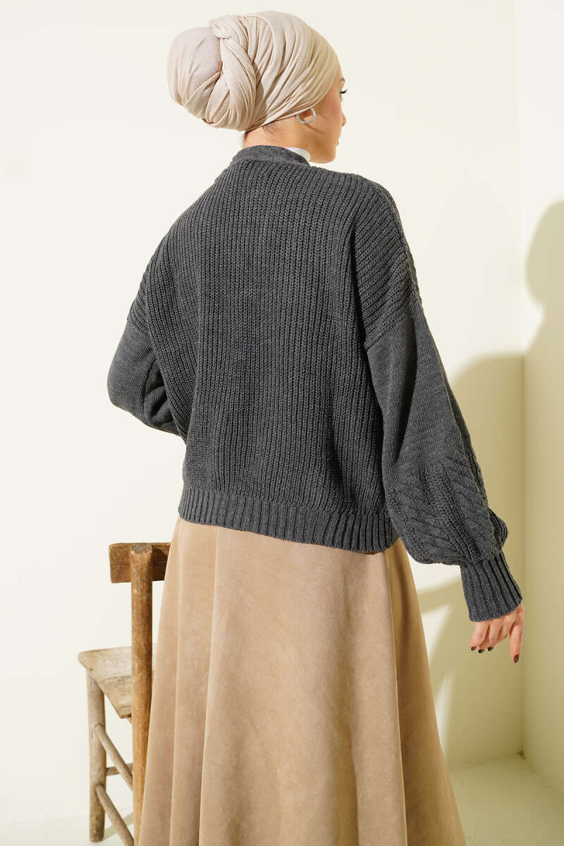 Küçük Kalp Nakışlı Triko Kazak Taş
