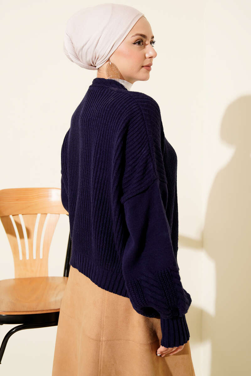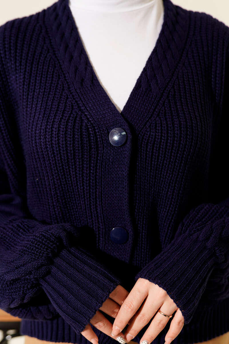 Desenli Düğmeli Kısa Triko Hırka Lacivert