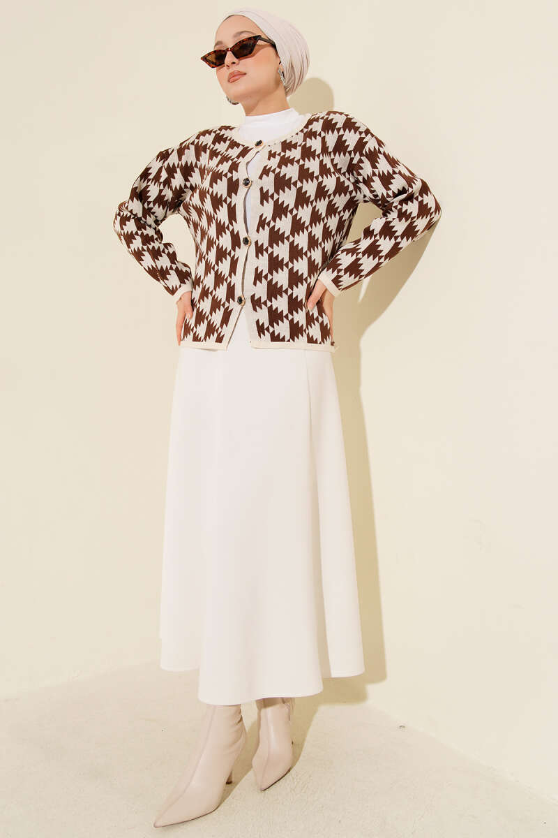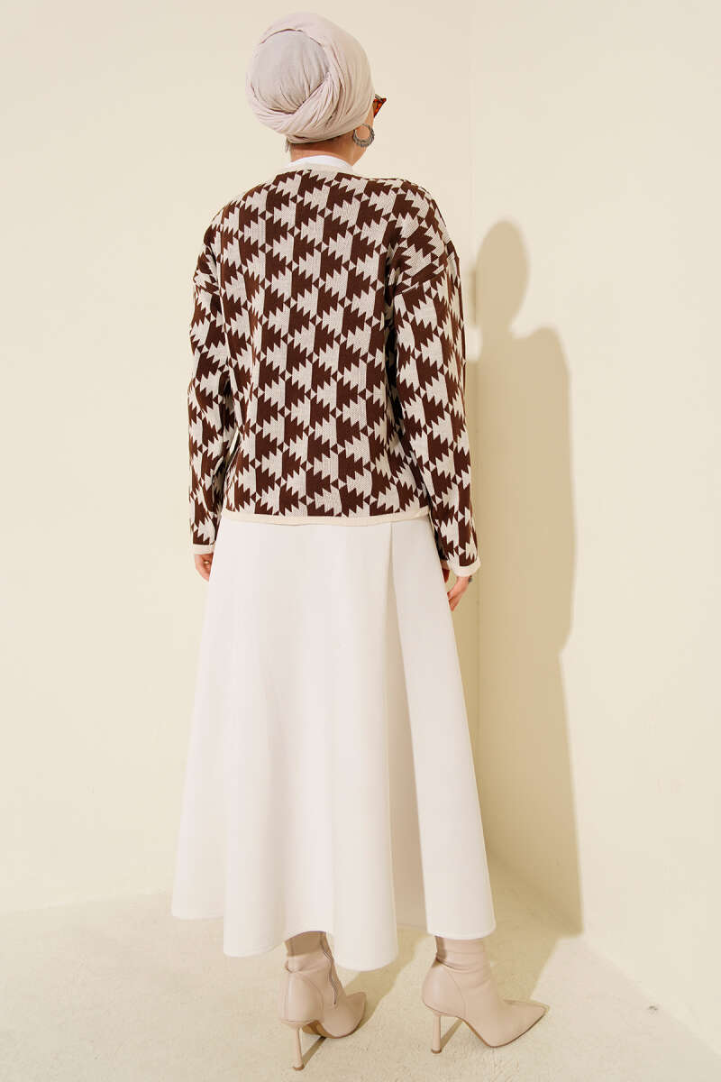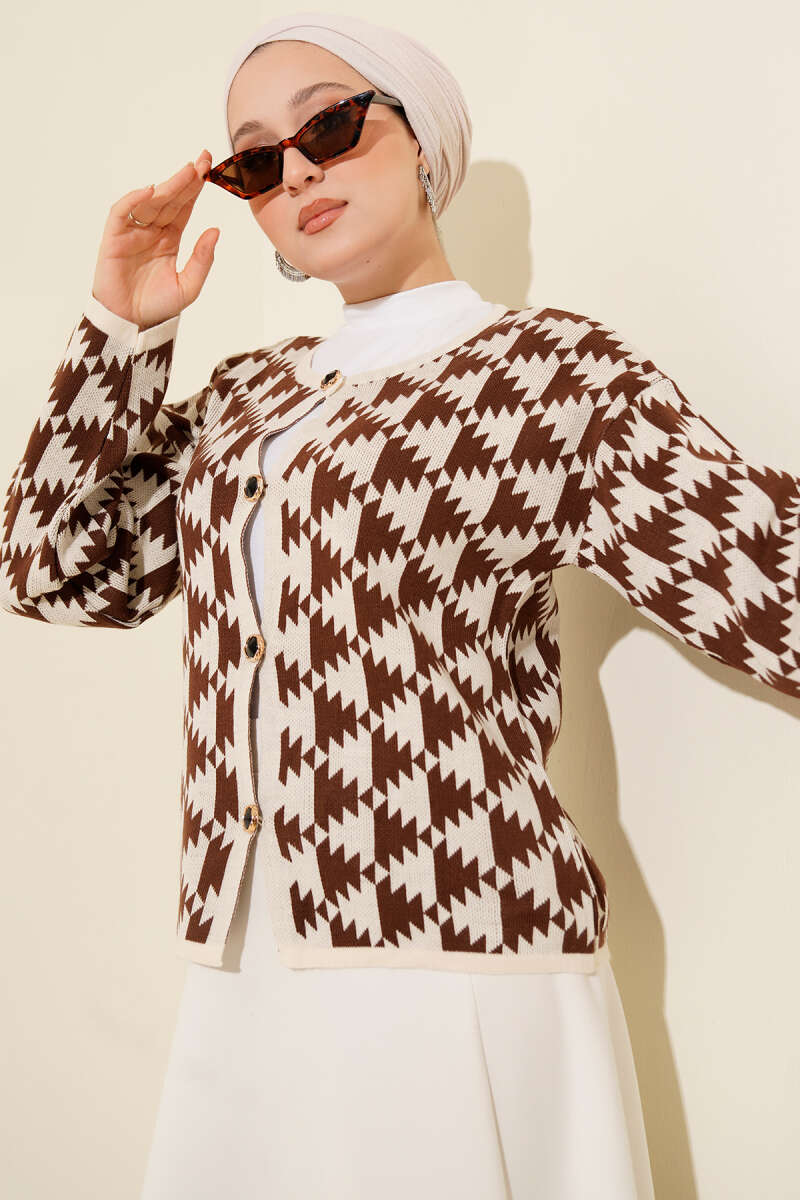 Kruvaze Yaka Düğmeli Kürklü Mont Kahve
