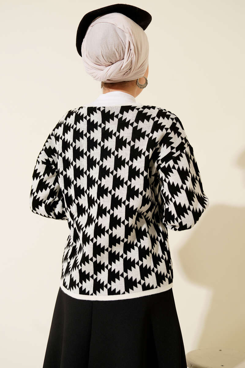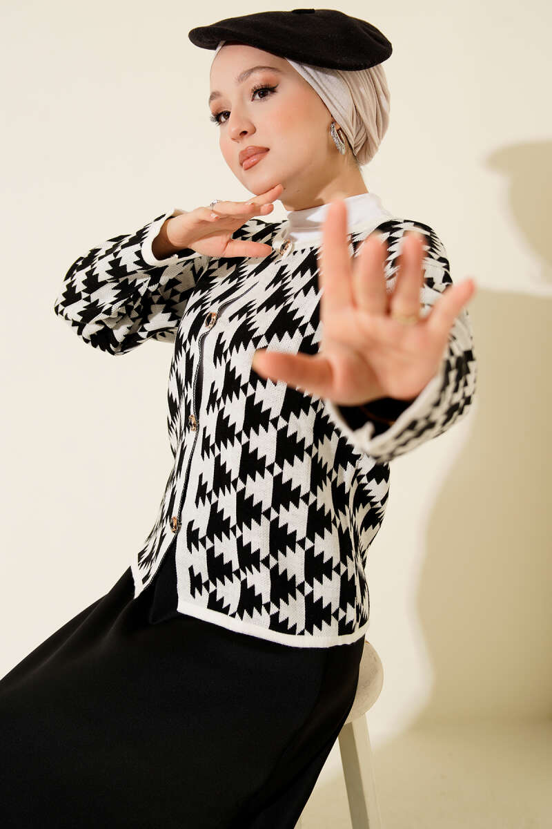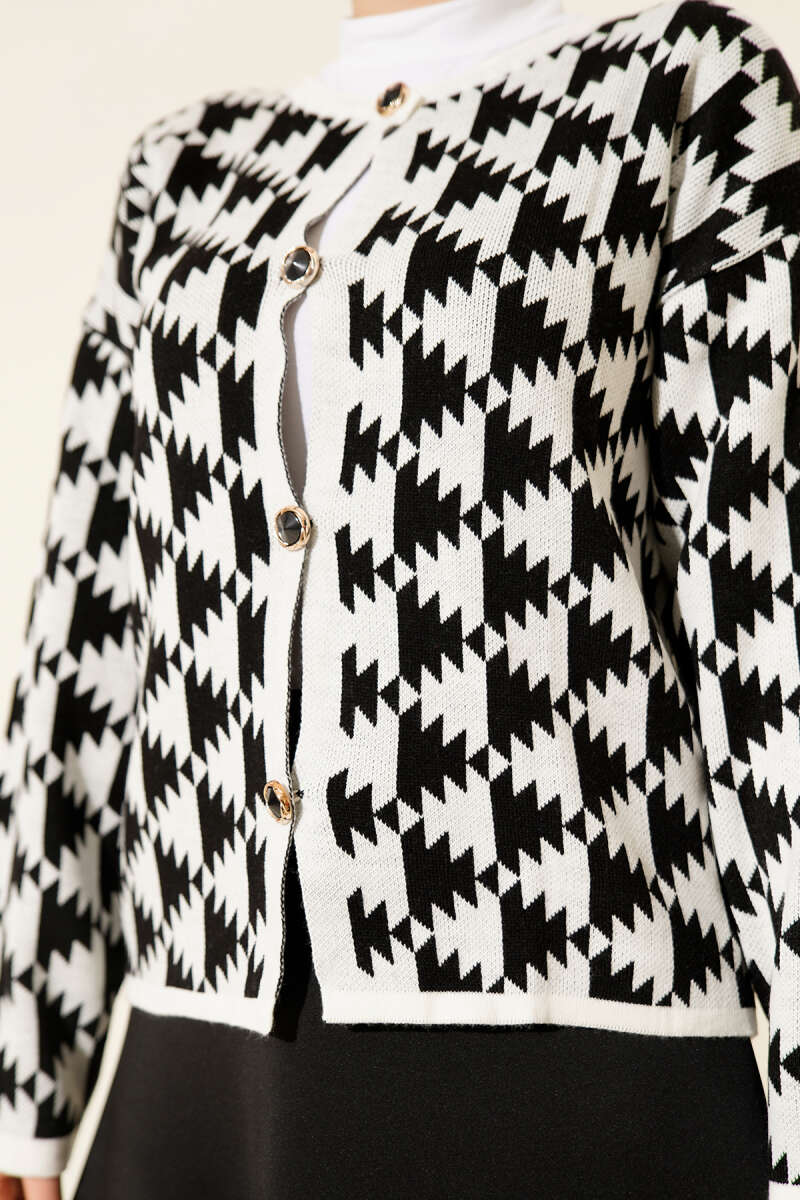 Desenli Düğmeli Triko Hırka Kahve
