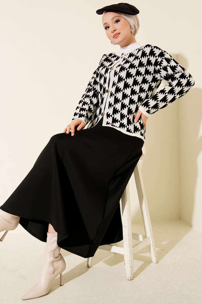 Deniz Yıldızı Düğmeli Triko Hırka Siyah