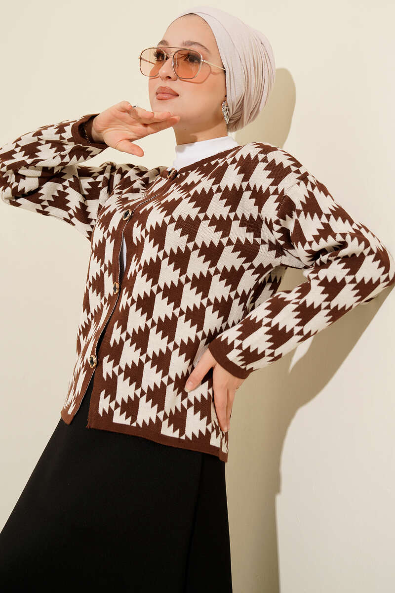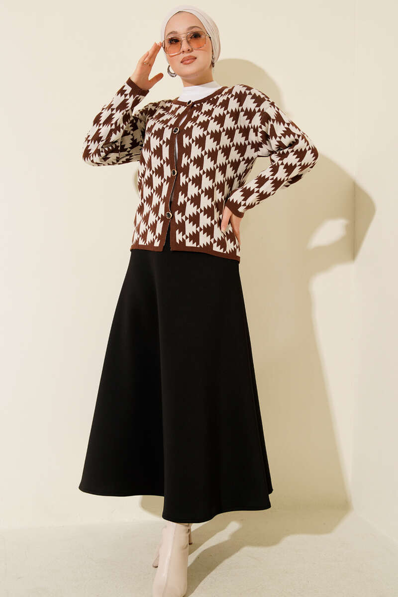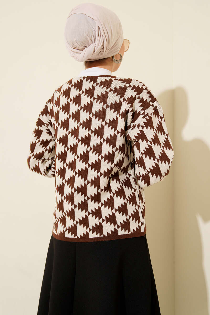 Büyük Çiçek Desenli Triko Tunik Kahve