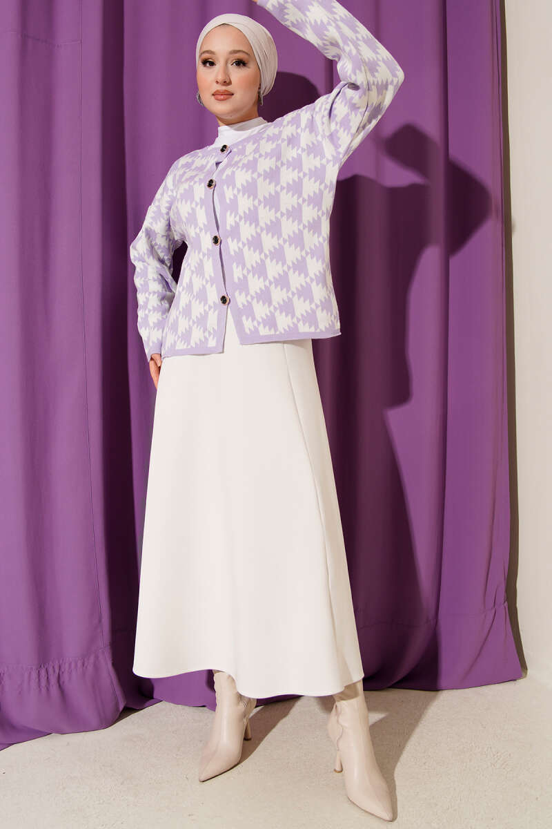 Metal Düğmeli Uzun Sakallı Hırka Beyaz