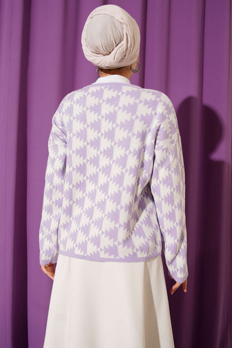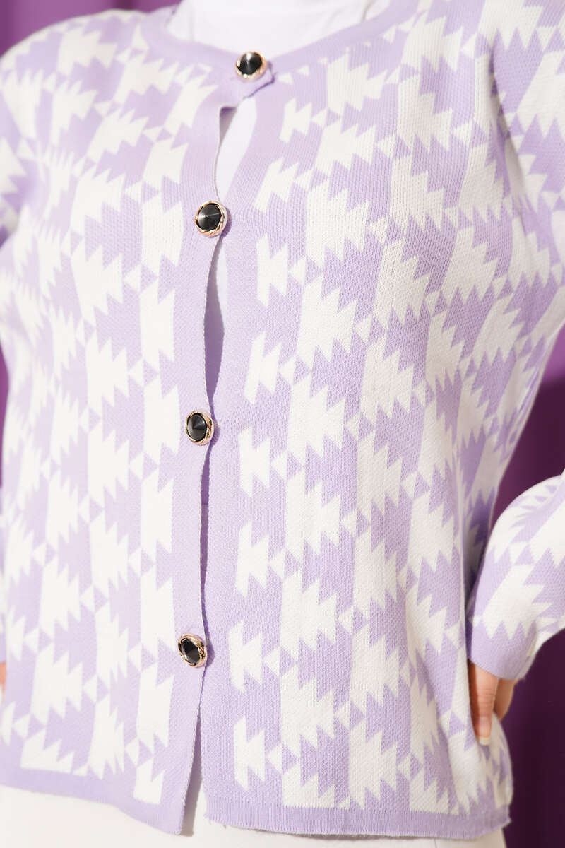 Metal Düğmeli Uzun Sakallı Hırka Mürdüm