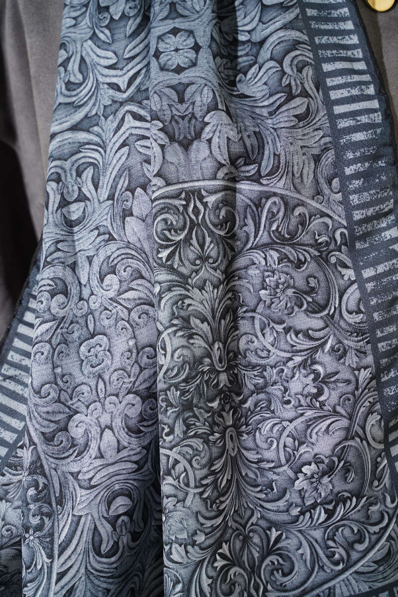 Desenli El Dikişli Ribanalı Şal Lacivert