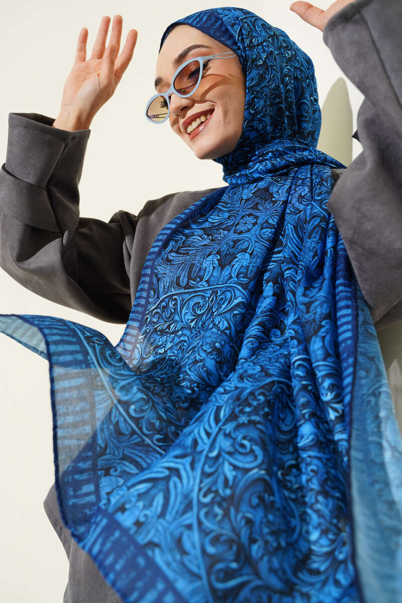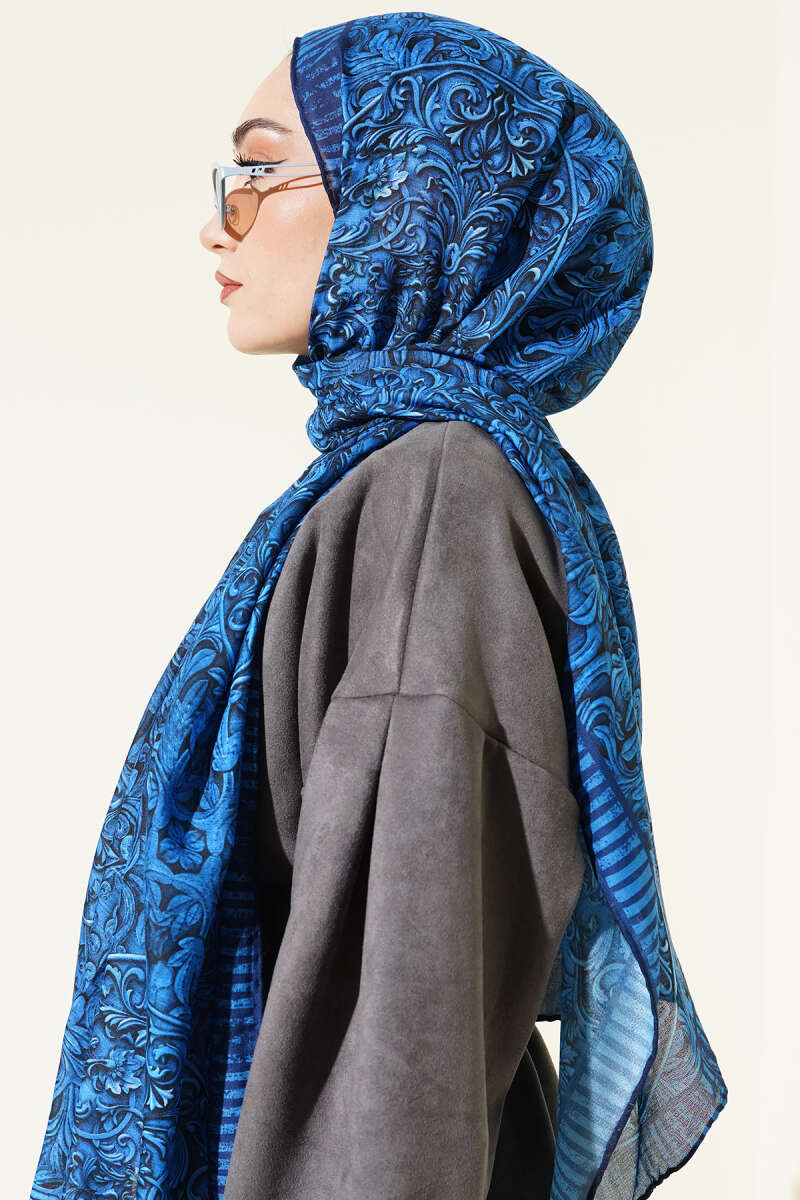 Aya Serisi İnce Pamuk Şal İndigo -160