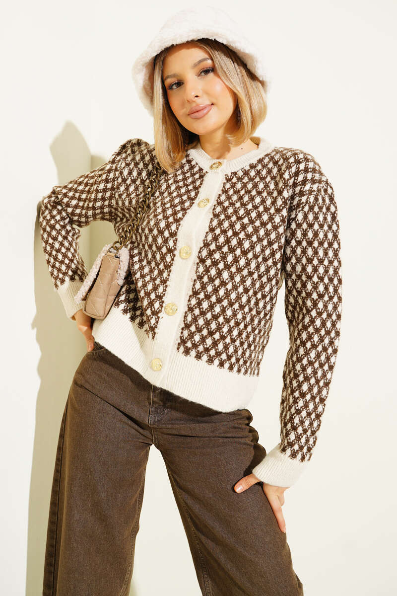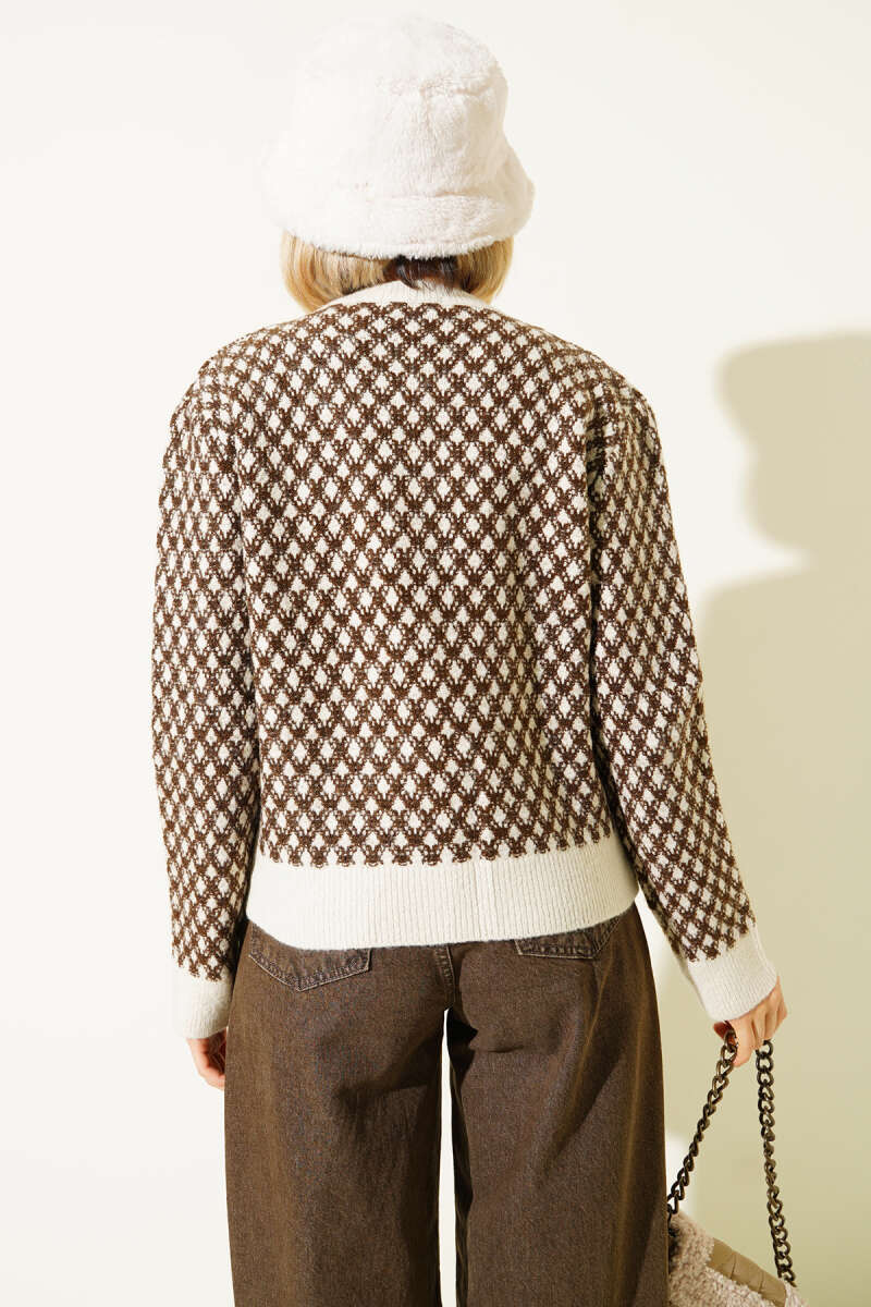 Çizgi Baklava Desen Triko Tunik Kahve