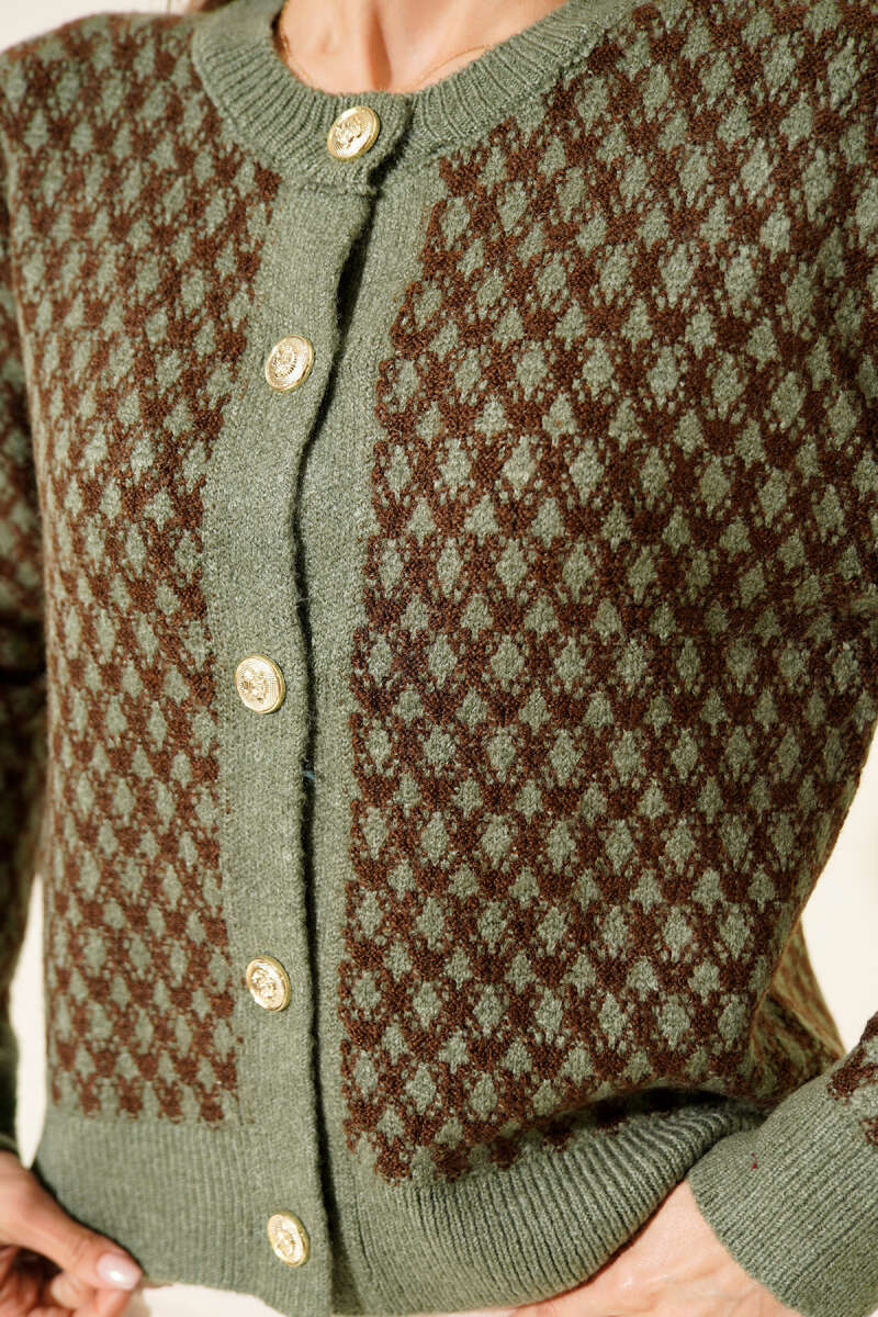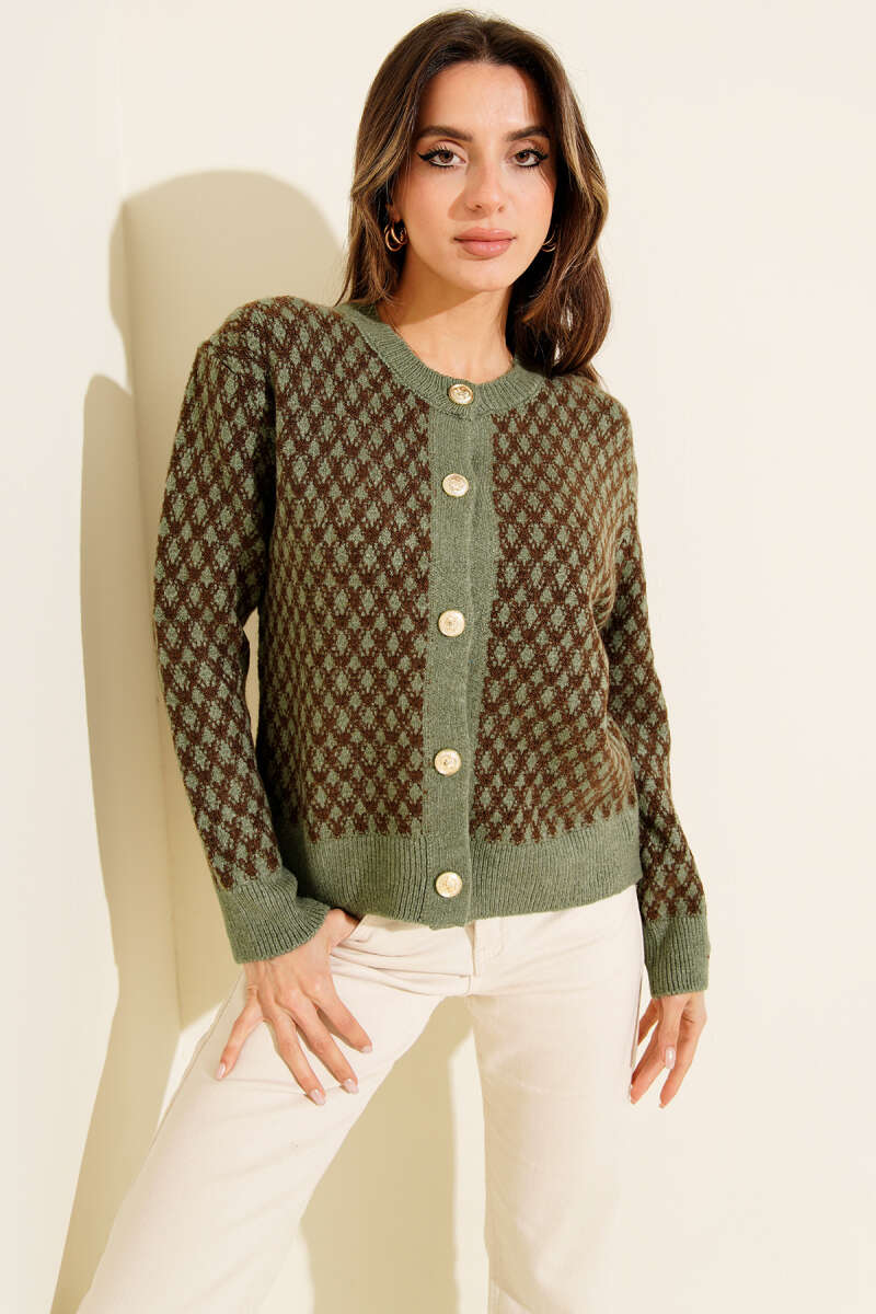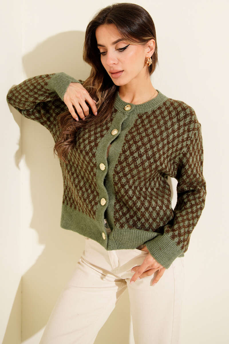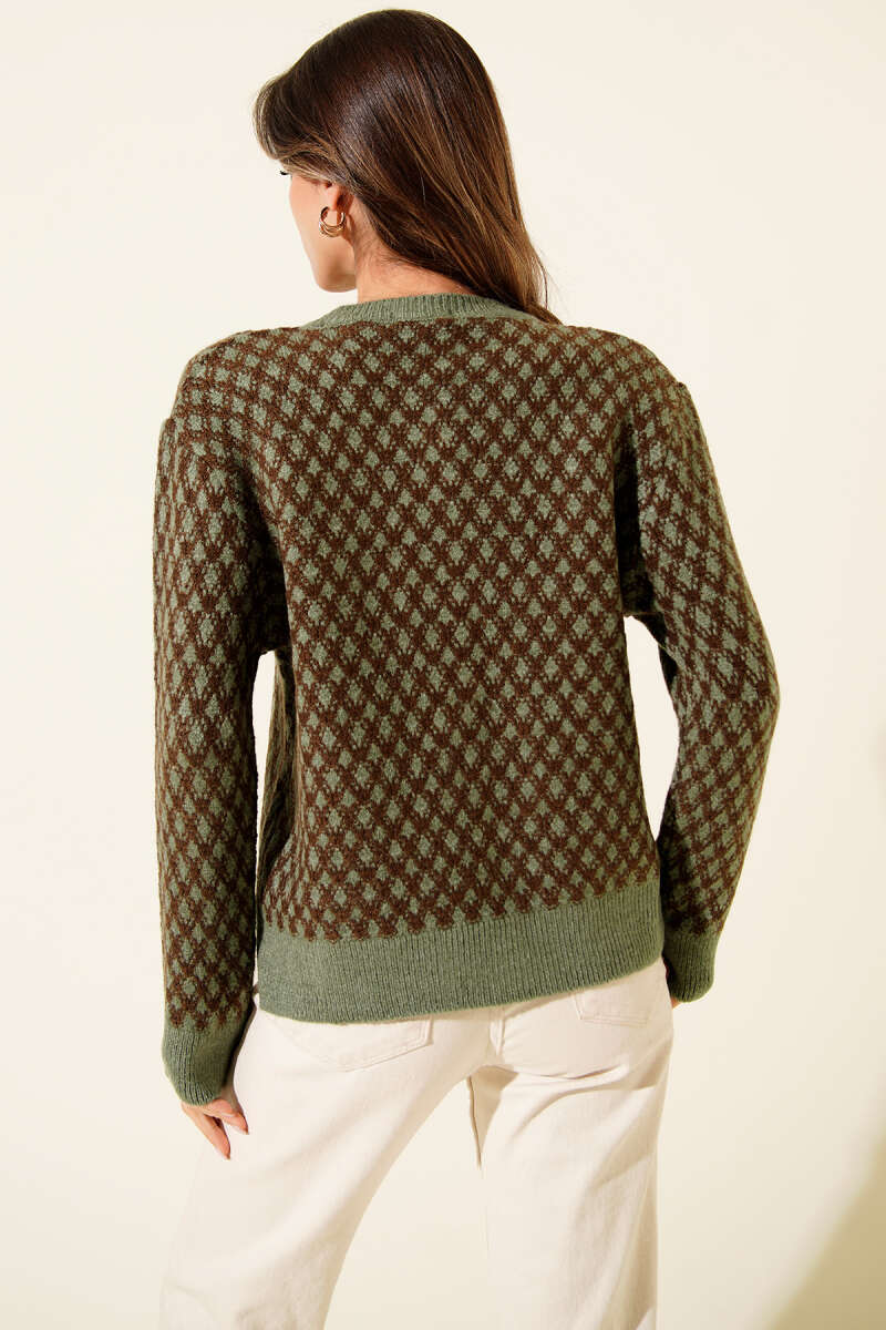 Kruvaze Yaka Düğmeli Triko İkili Takım Kahve