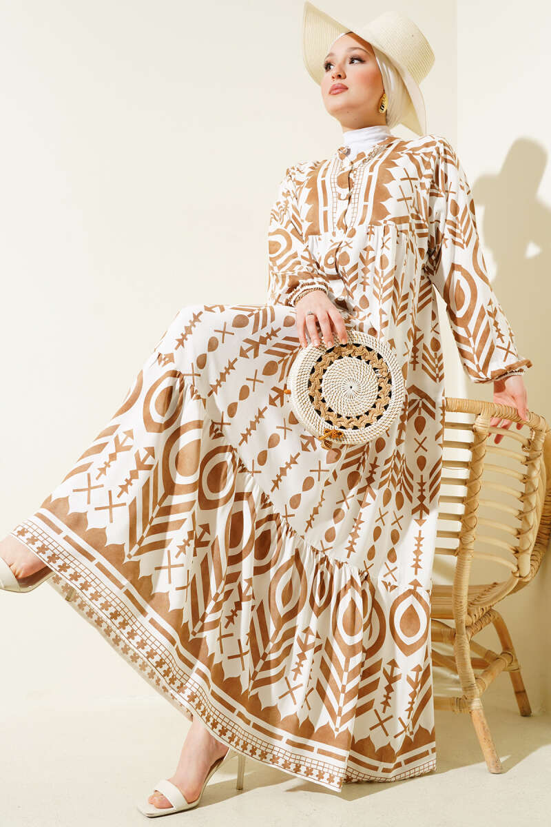 Bel Taşlı Pelerinli Abiye Elbise Kahve