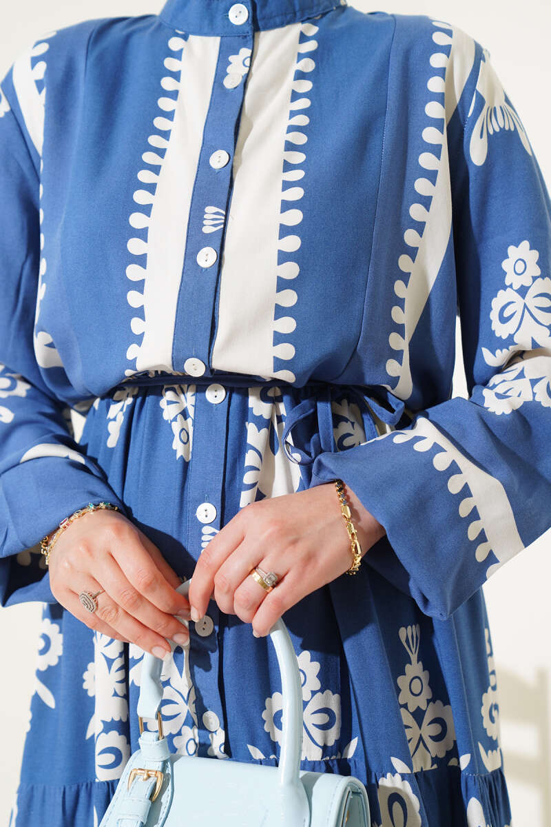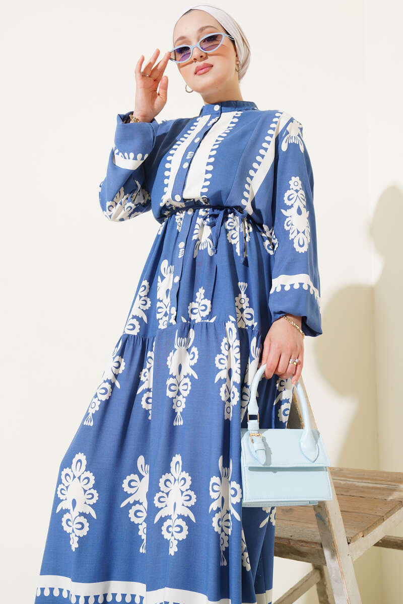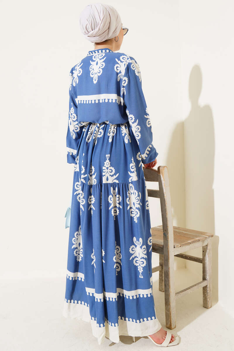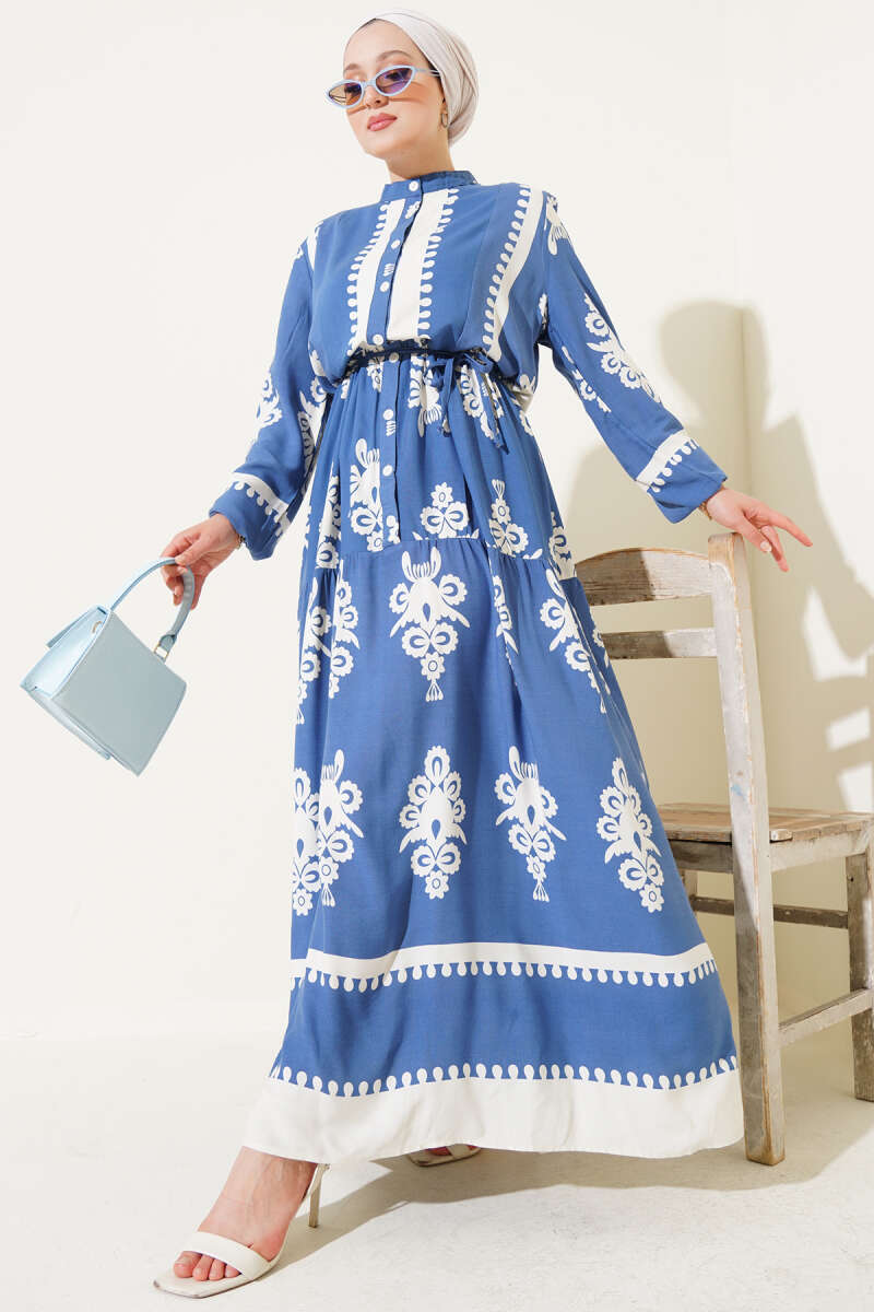 Kolları Fiyonk Detaylı Selanik Elbise Taş