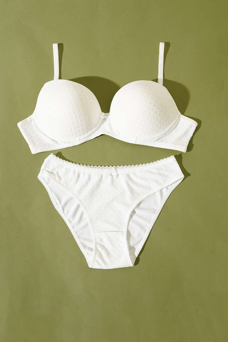 Desenli Jakar Desteksiz Sütyen Takım Ekru