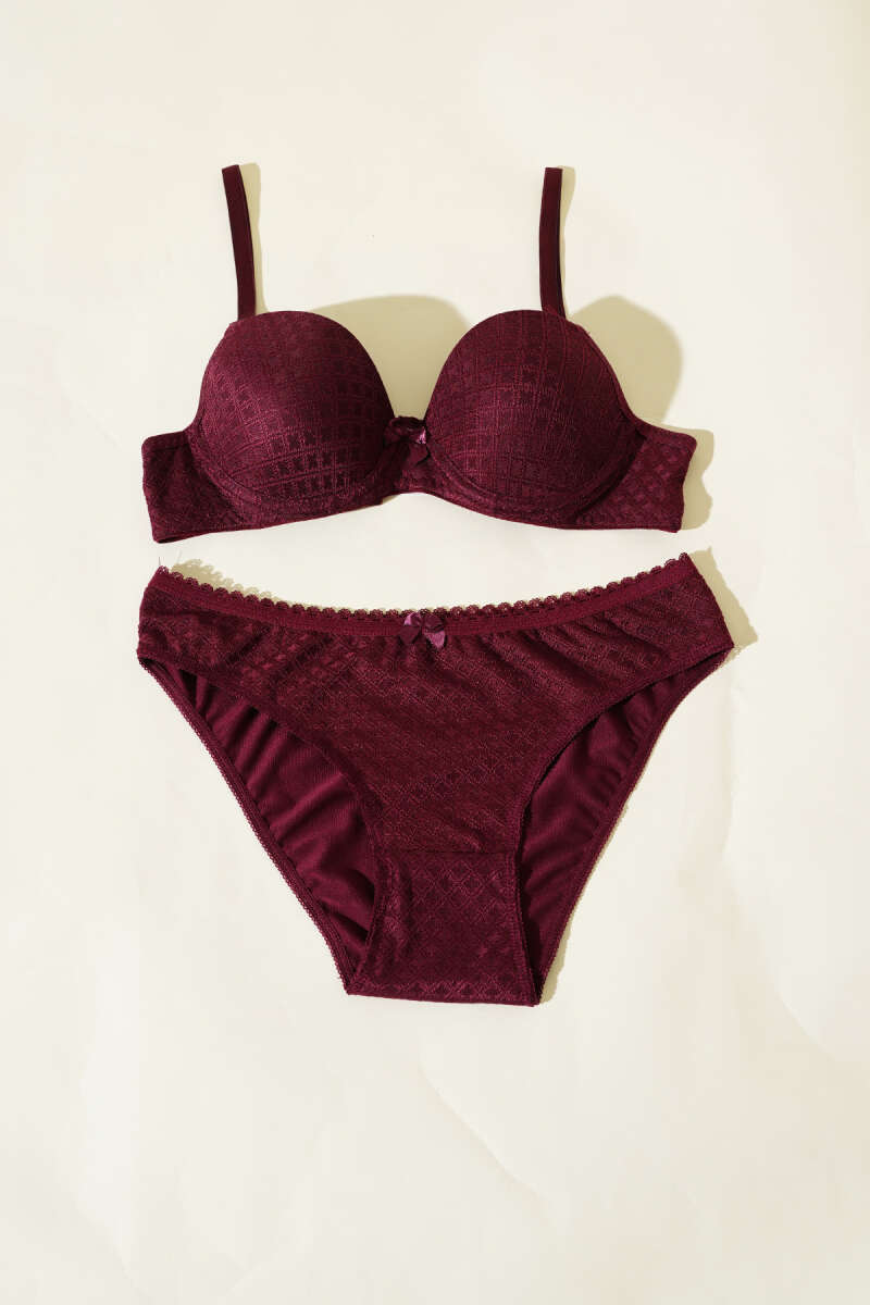 Desenli Jakar Desteksiz Sütyen Takım Mürdüm