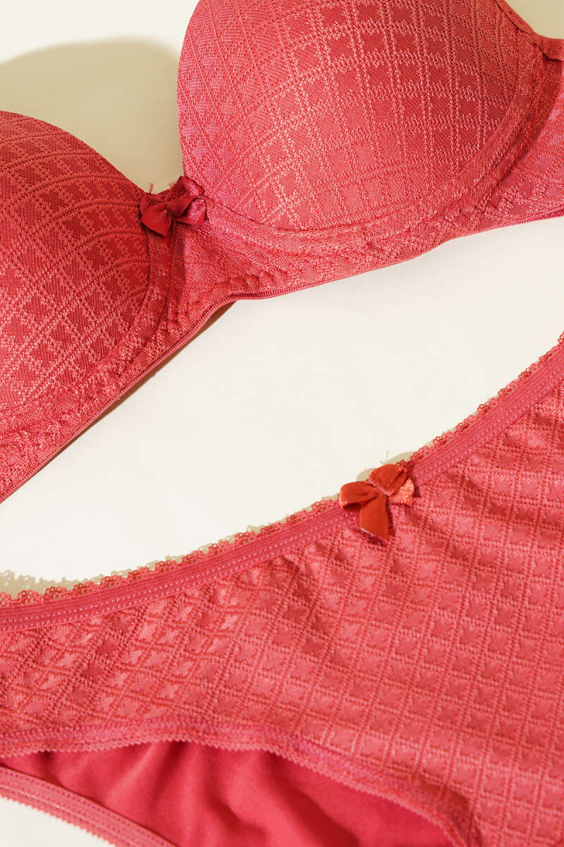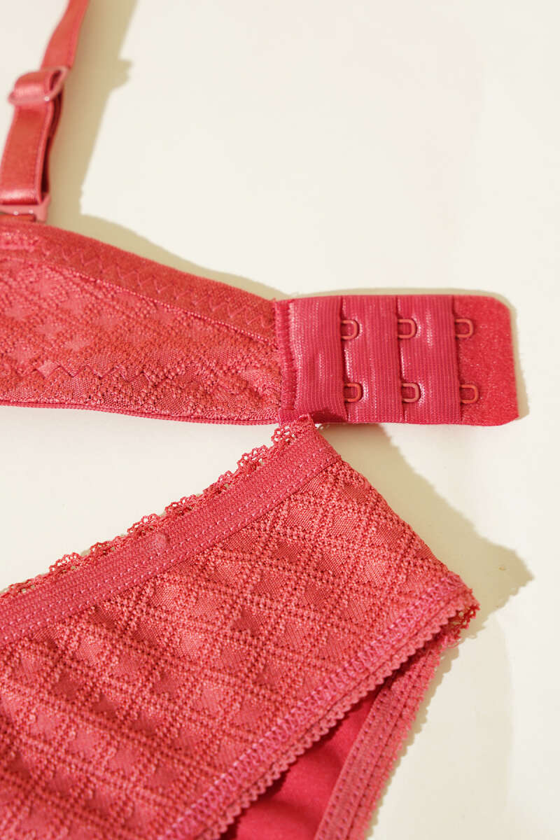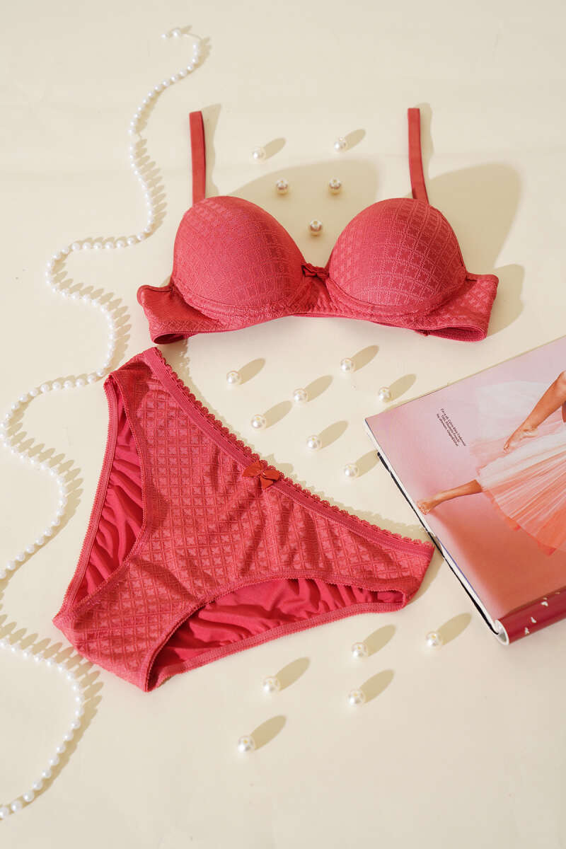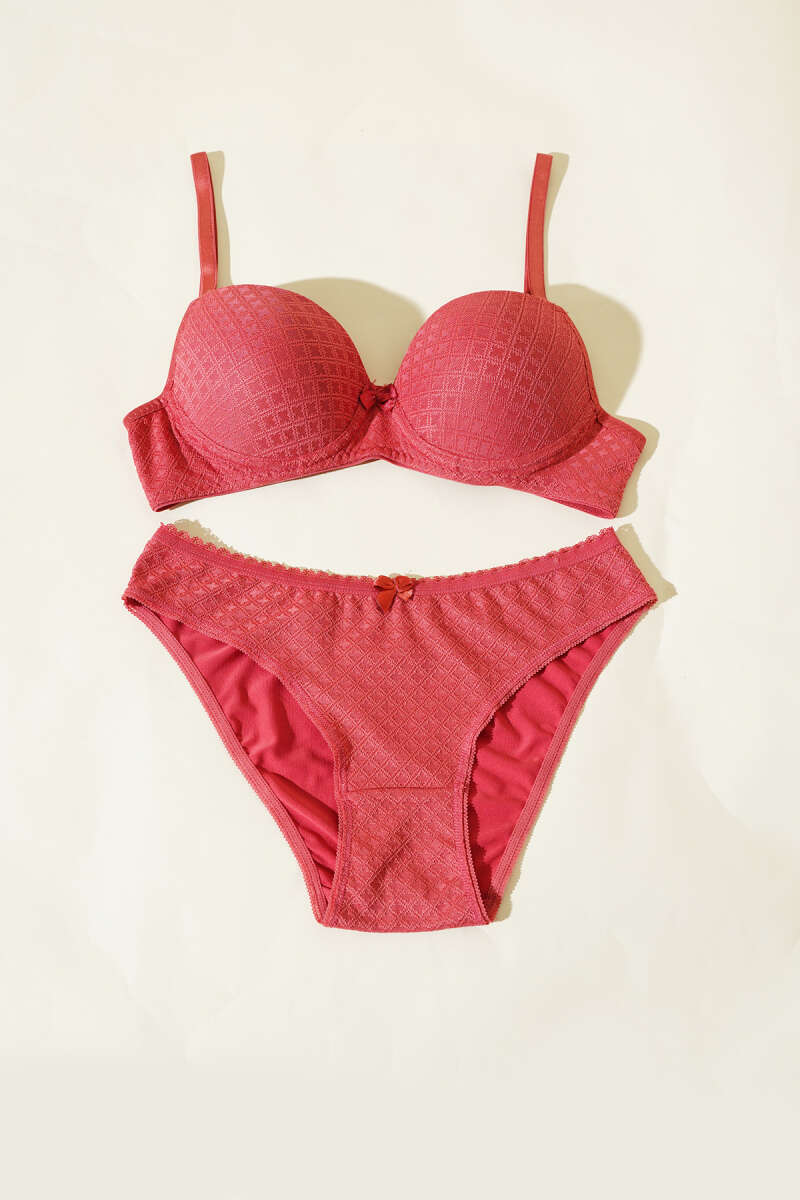 Desenli Jakar Desteksiz Sütyen Takım Nar Çiçeği