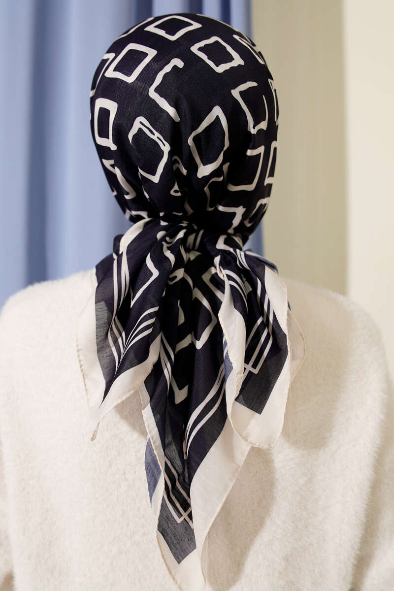 Desenli Lacivert Serisi Eşarp Asorti 3