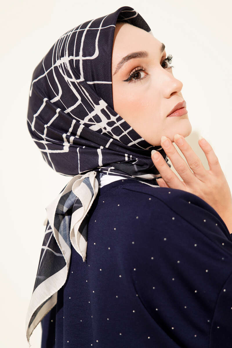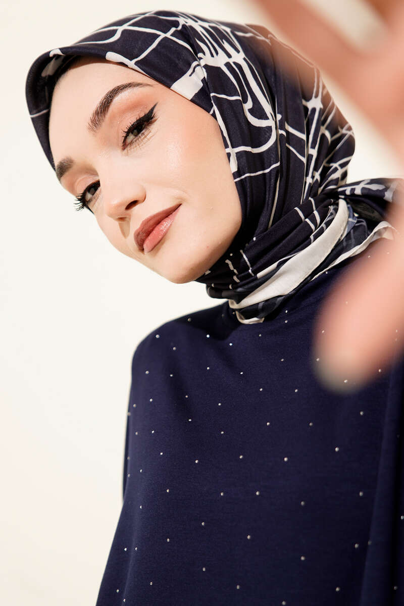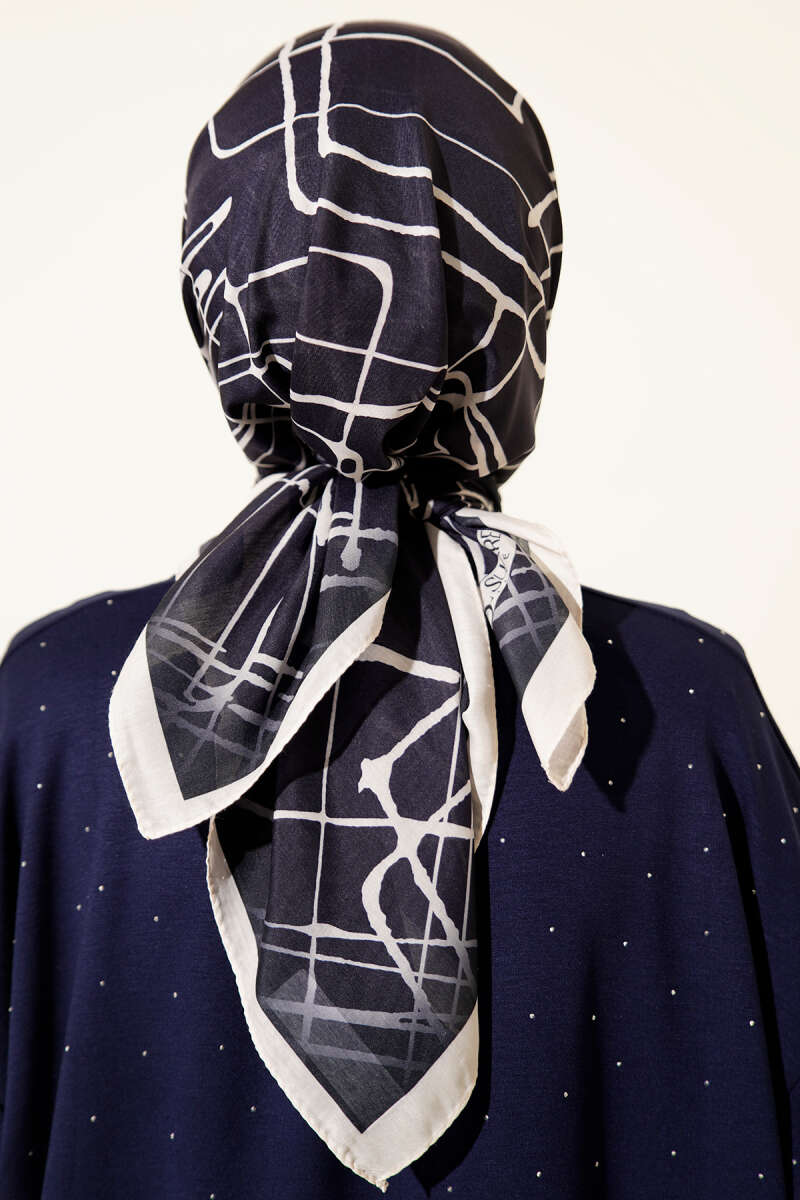 Desenli Lacivert Serisi Eşarp Asorti 7