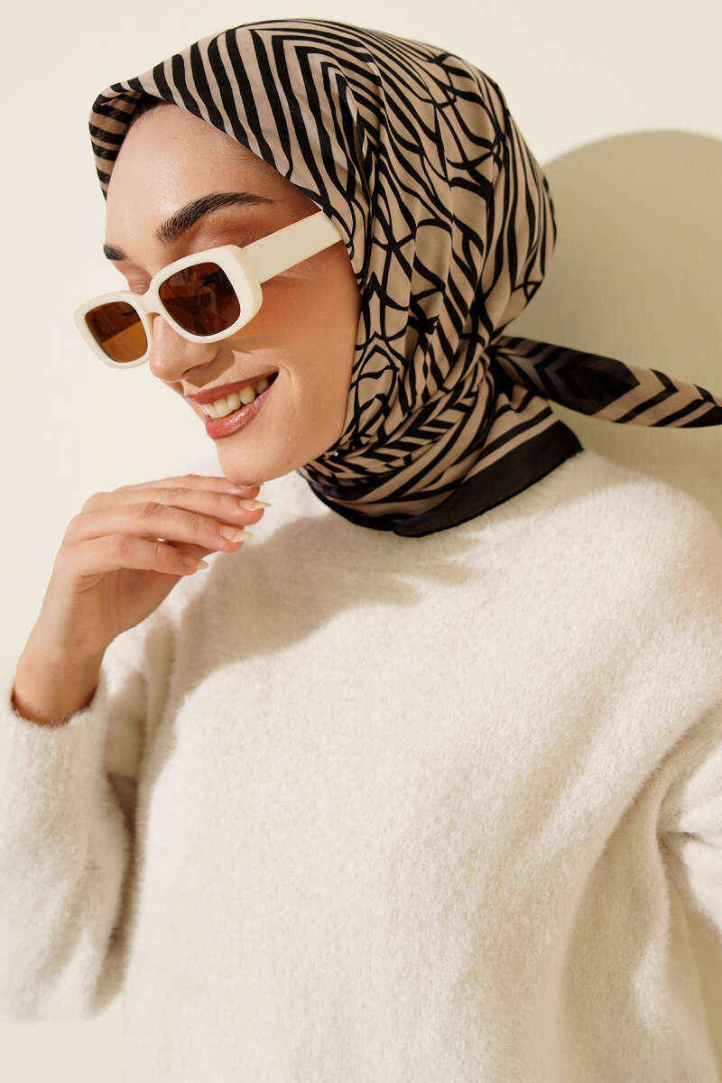 Desenli Acı Kahve Serisi Eşarp Asorti 1