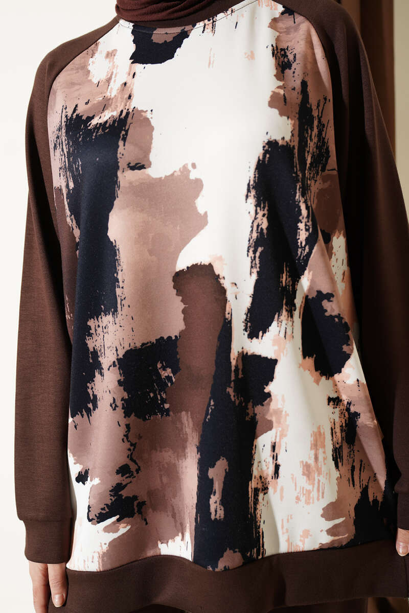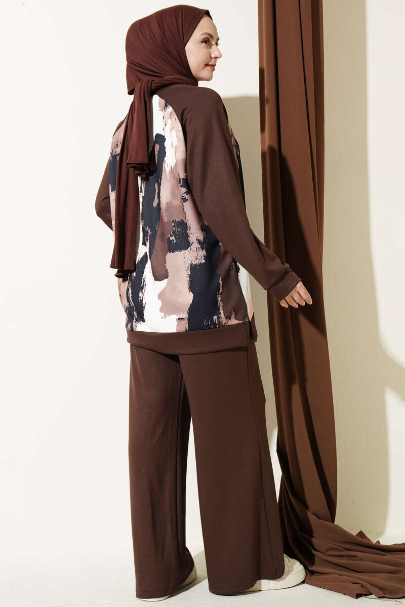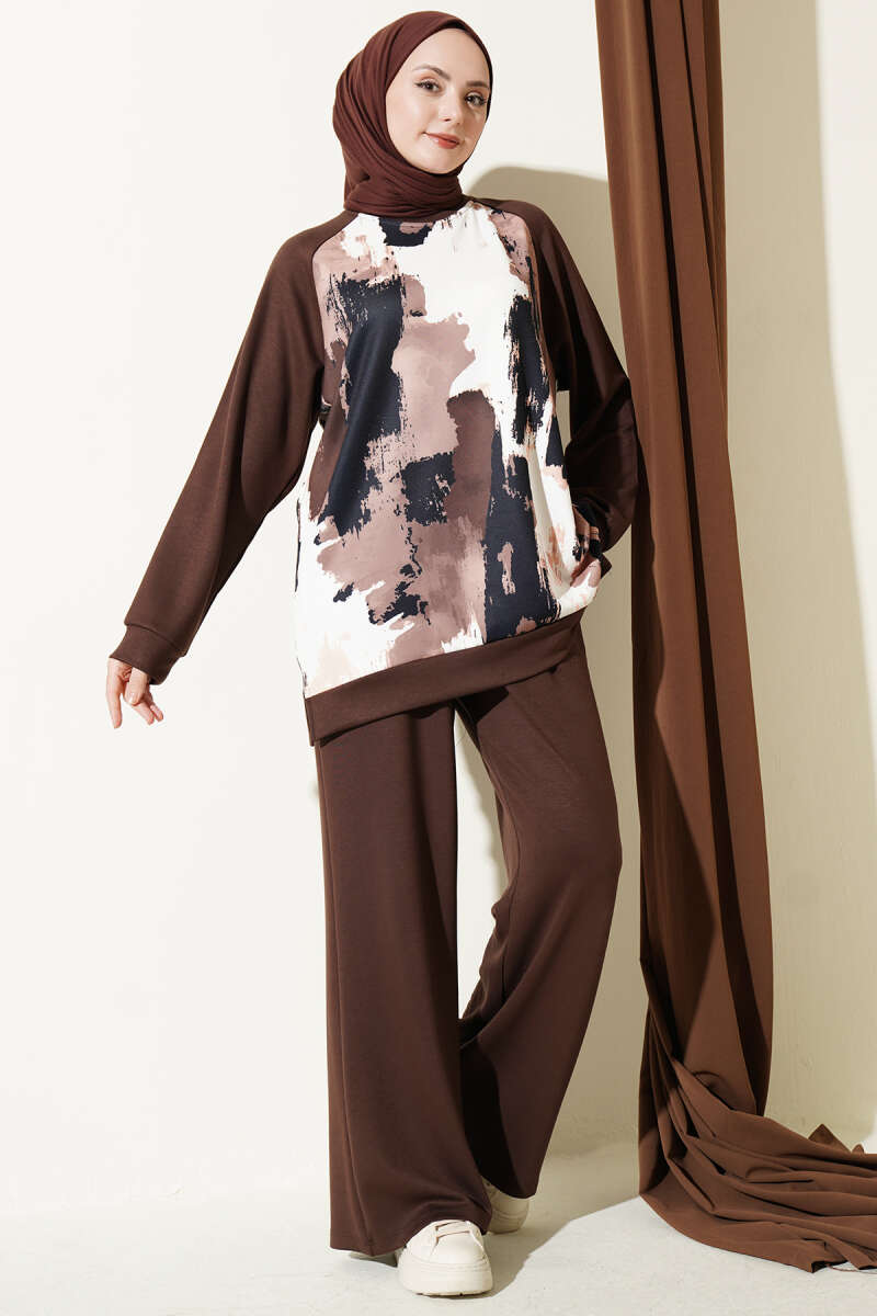 Desenli Loyşa Tunik İkili Takım Kahve