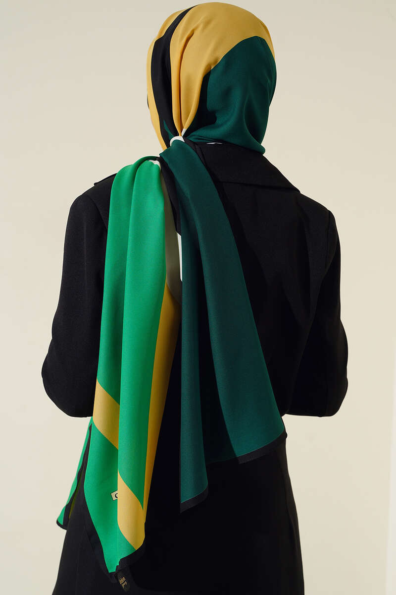Çiçek Desenli Bambu Kraş Şal Yağ Yeşili