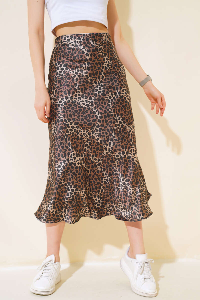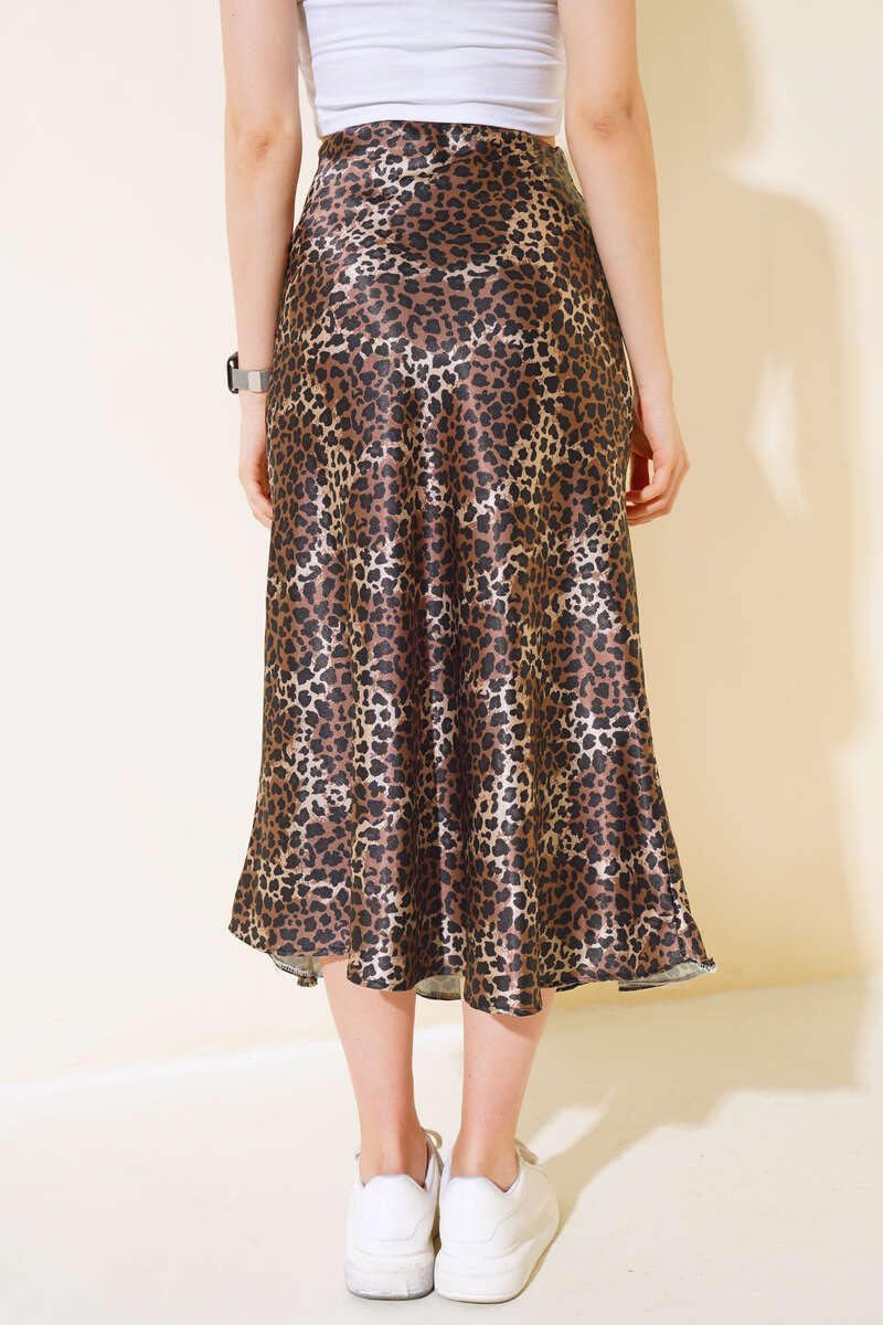 Desenli Midi Saten Etek Leopar