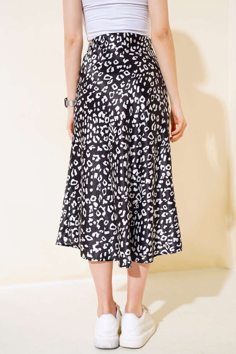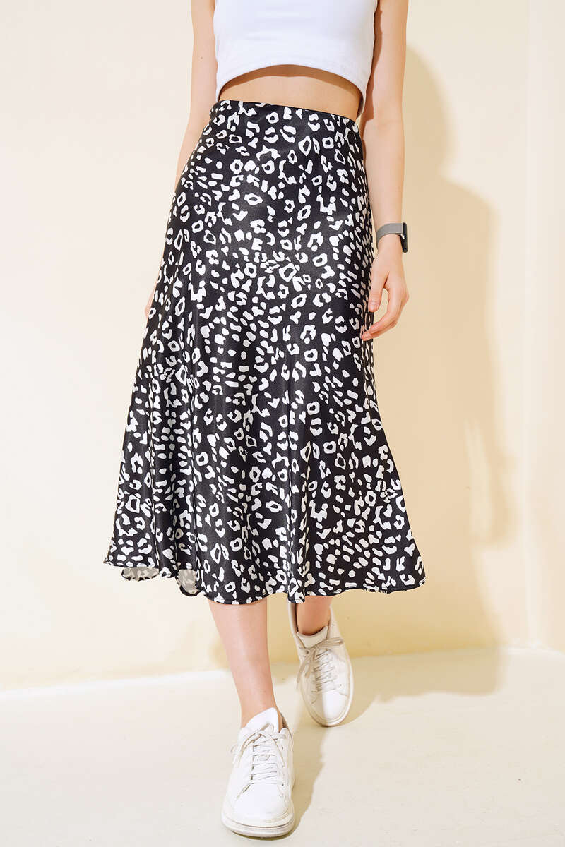 Yeni sezon eteğimiz favoriler arasında yerini almıştır. Eteğimizin beli lastiklidir. Astarsızdır. Saten kumaştır. Eteğimiz midi modeldir. Desenleriyle şıklık kazanan eteğimiz kombinlerinizin en şık parçası olacaktır.