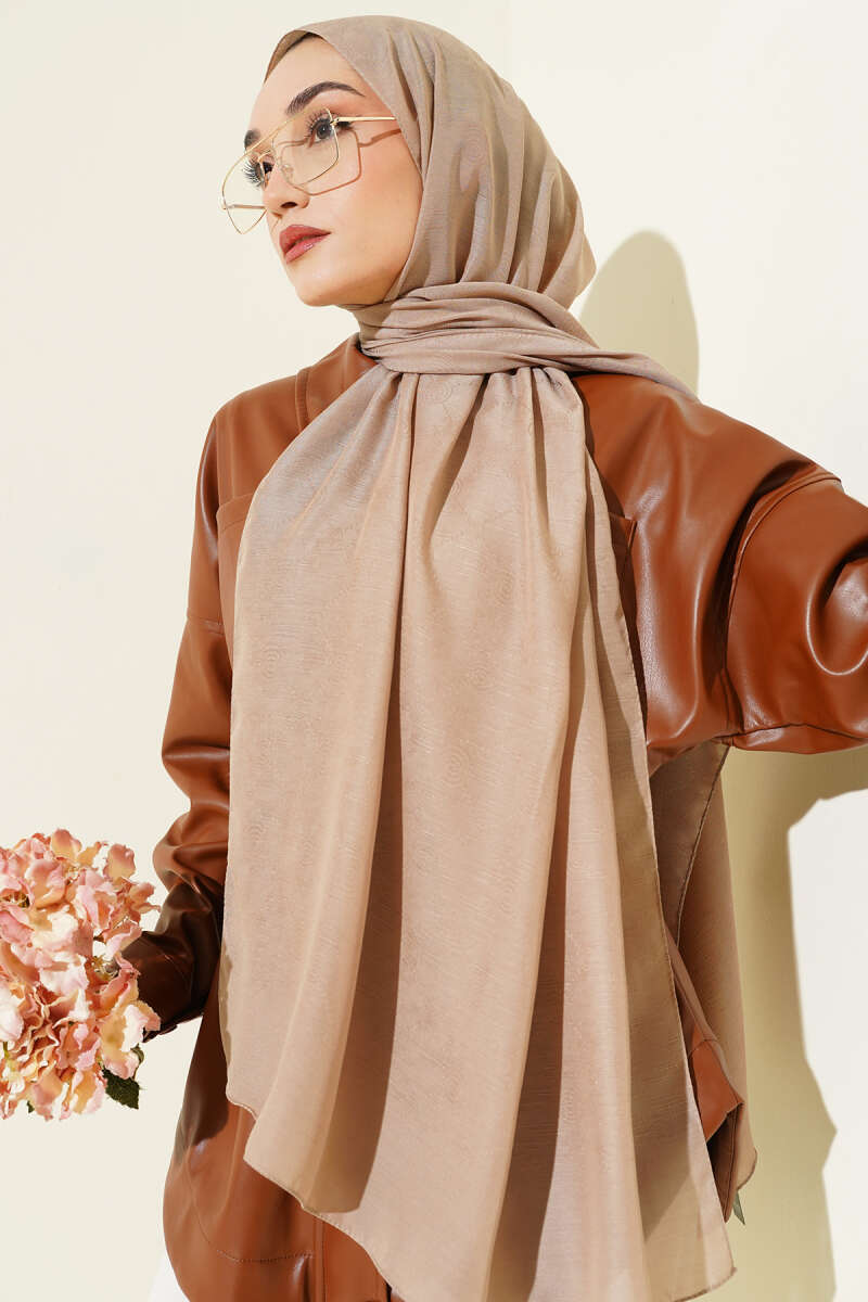 Motifli Modal Eşarp Vizon