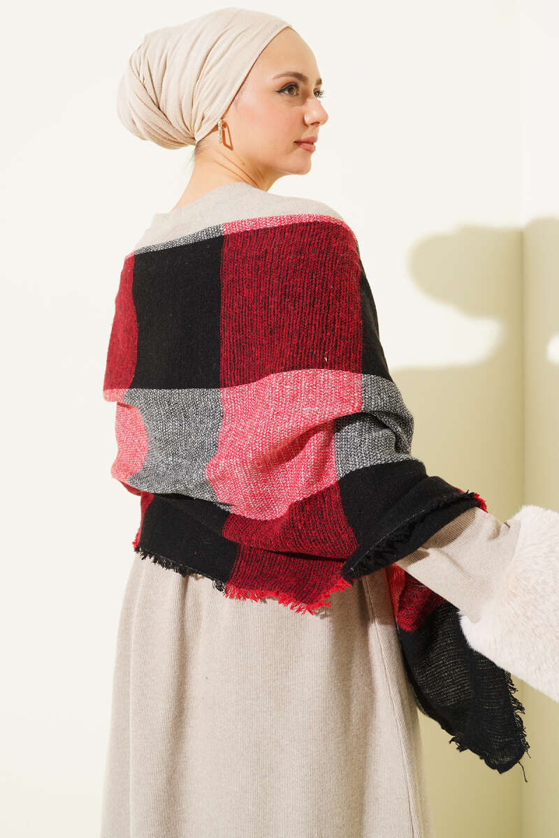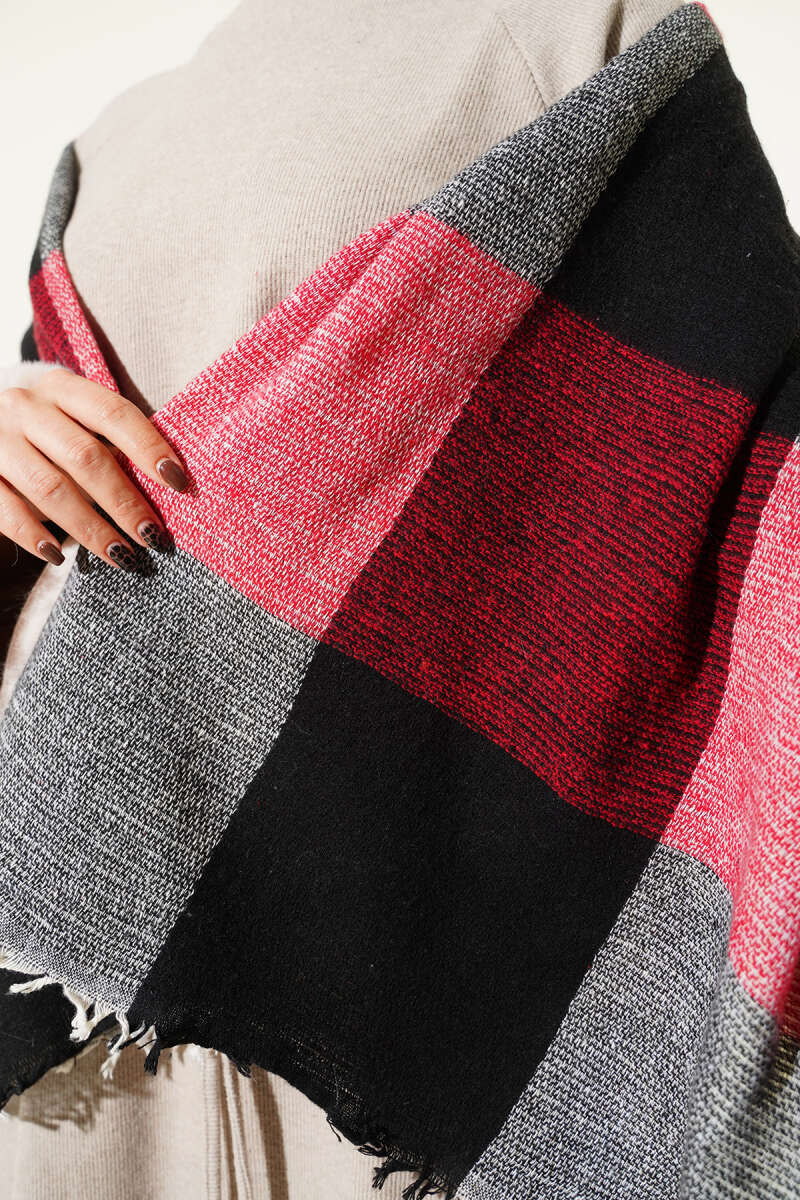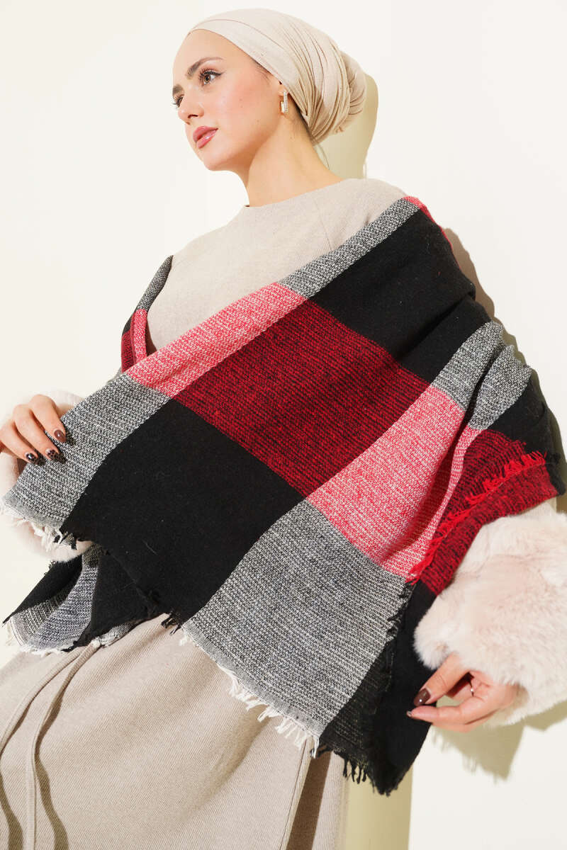 Çizgi Detaylı Omuz Şalı Kırmızı