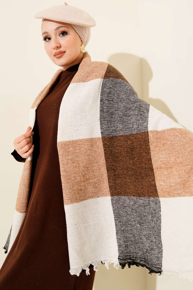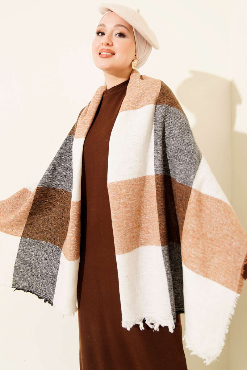 Çizgi Detaylı Omuz Şalı Zümrüt