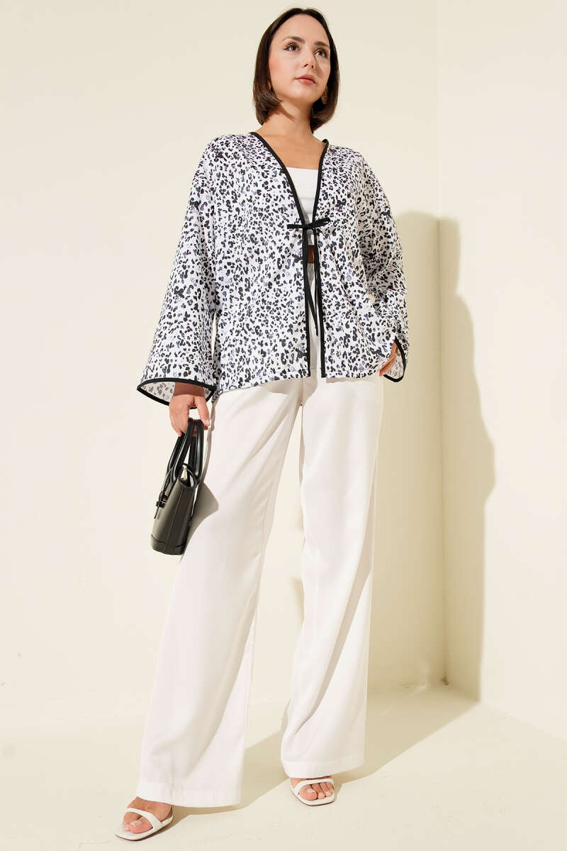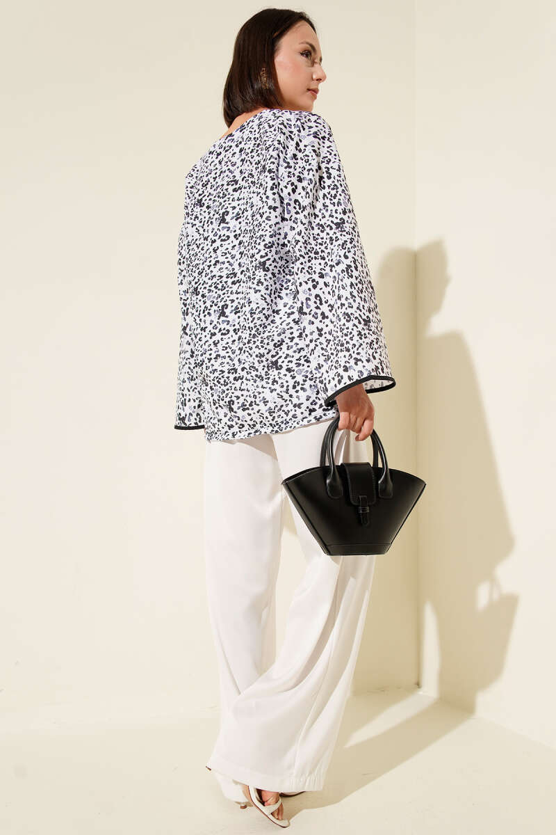 Geniş Bel Lastikli Çımalı Pantolon Beyaz