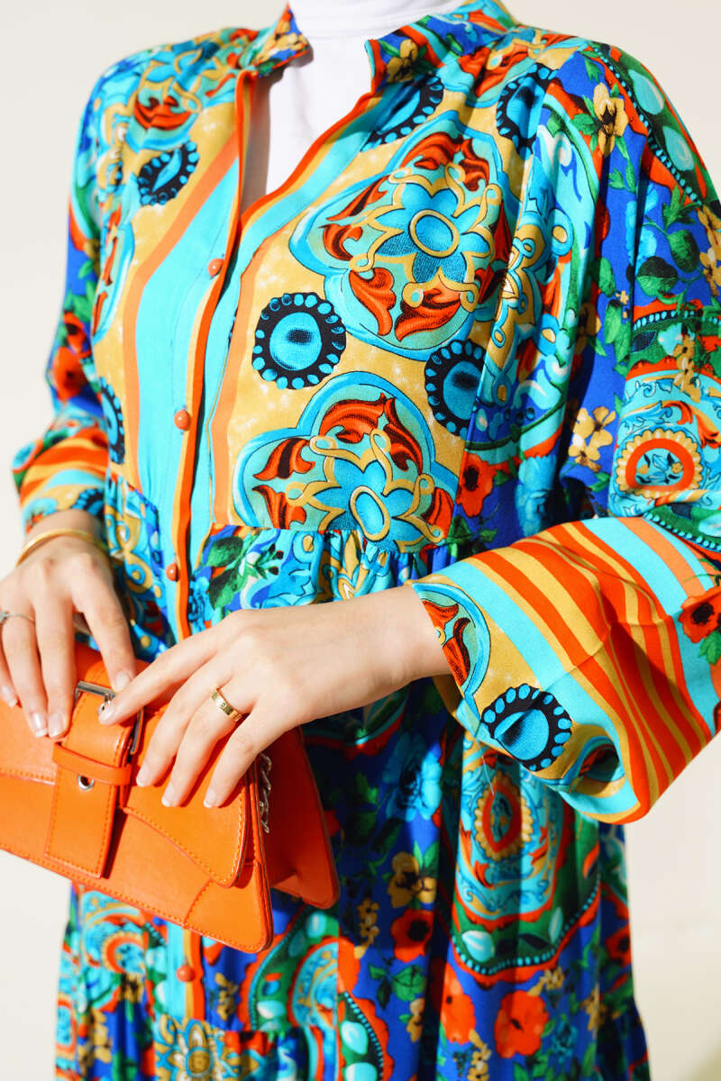 Boydan Dikiş Detaylı Kot Elbise Kot Mavisi