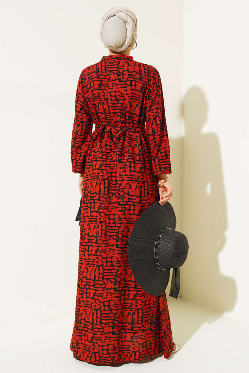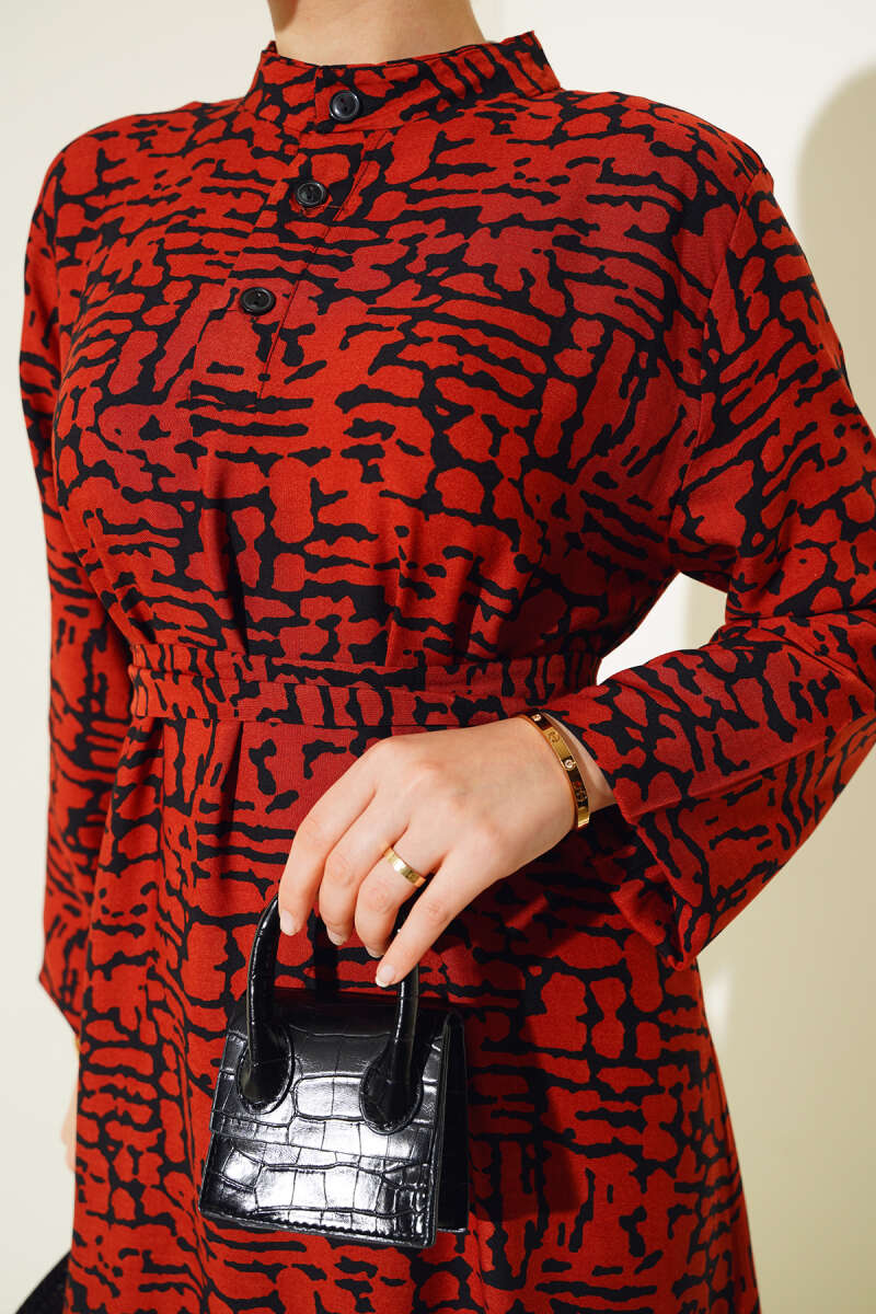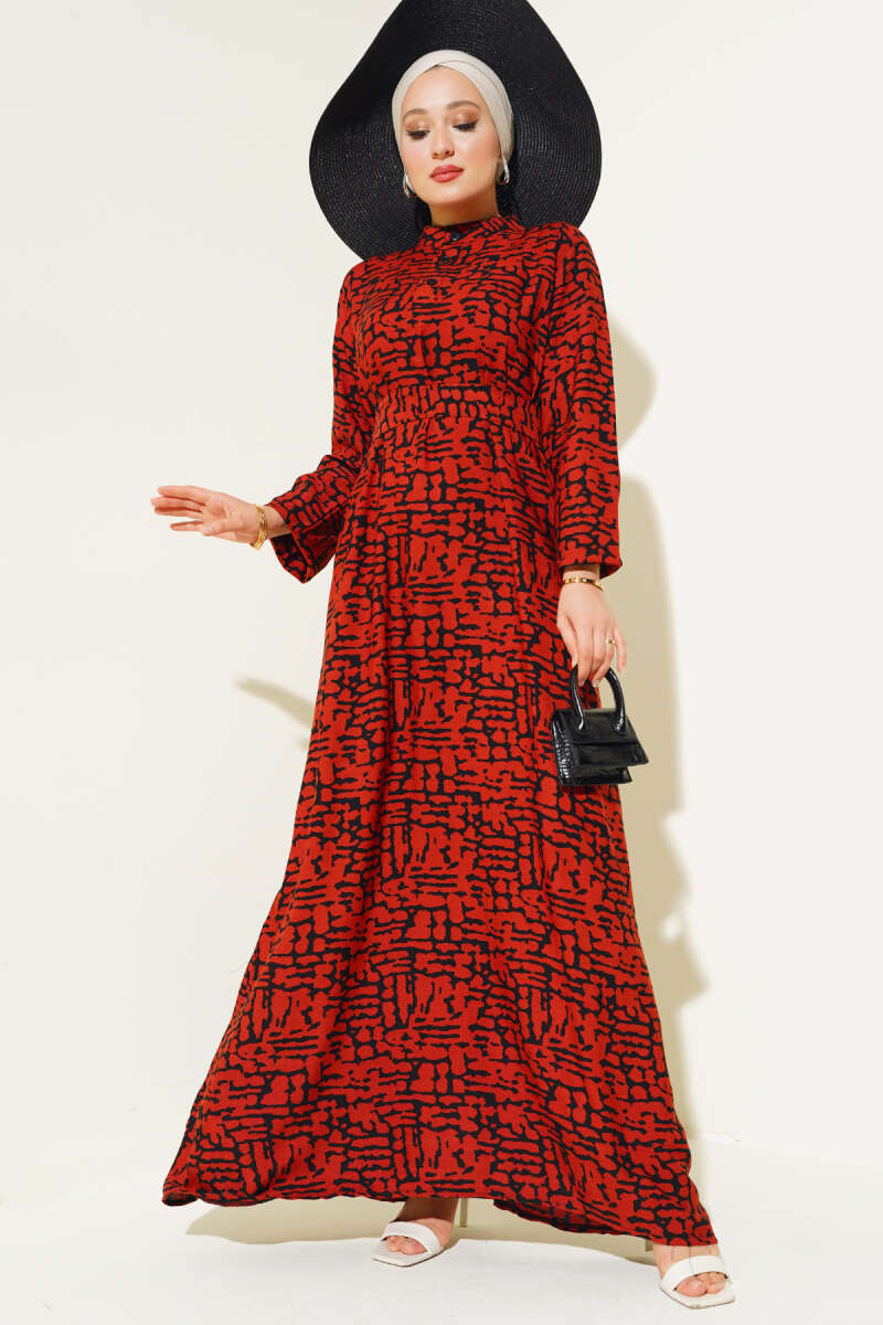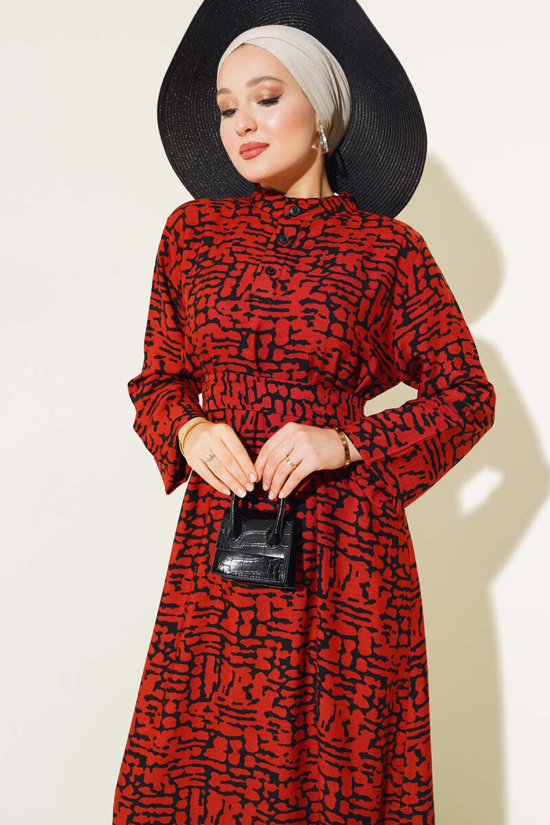 Kol Bileği Lastikli Kat Kat Elbise Taba