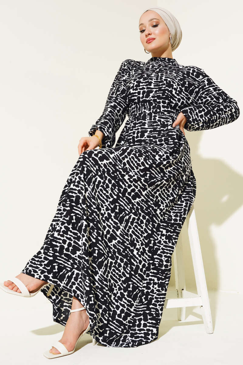 Çapraz Yaka Simli Abiye Elbise Siyah