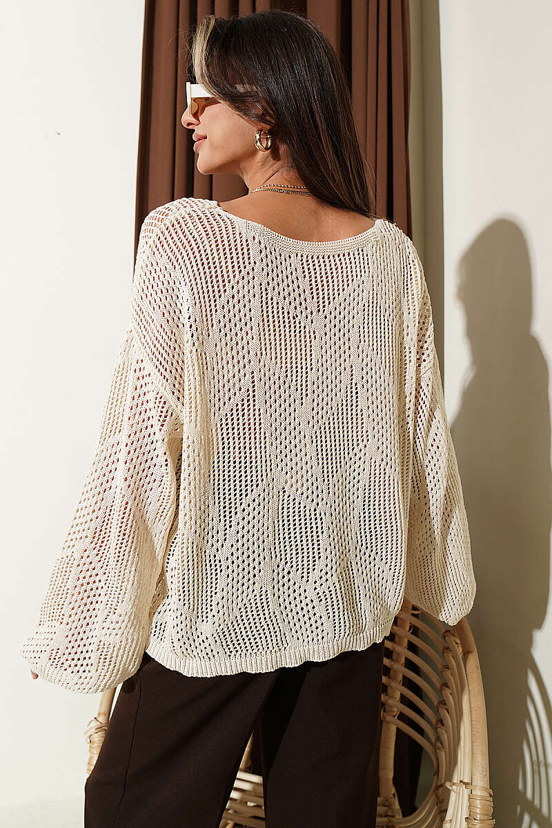 Gömlek Yaka Loyşa Taşlı T-shirt Takım Bej