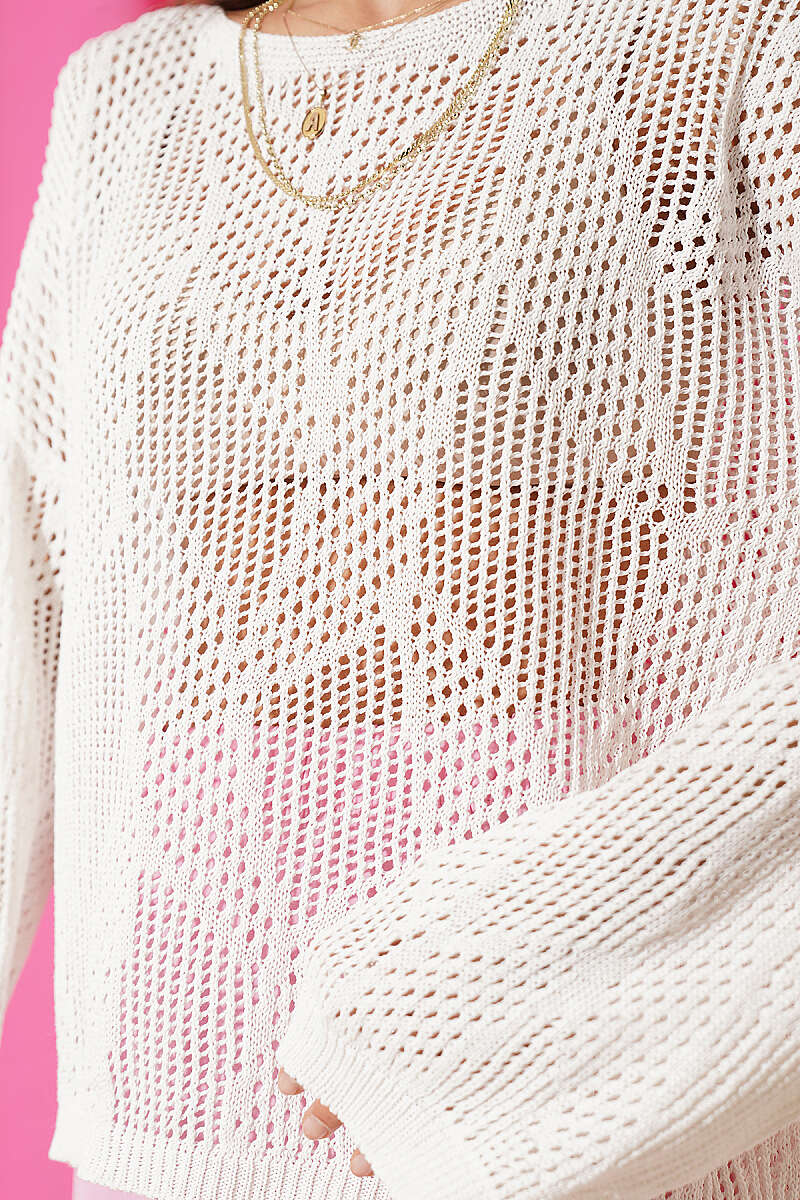 Desenli Oversize Ajur Triko Kazak Beyaz