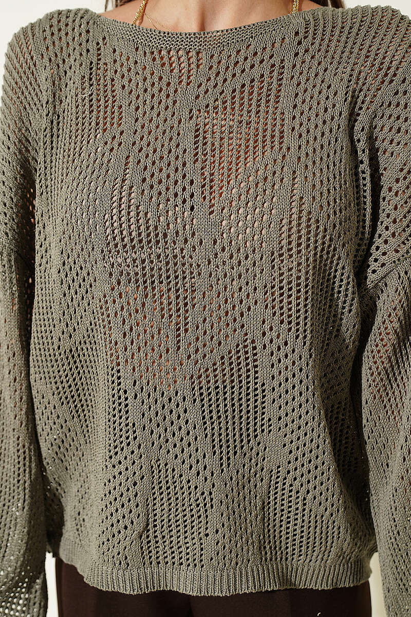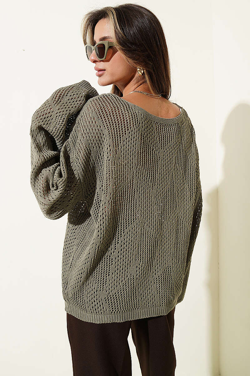 Desenli Oversize Ajur Triko Kazak Nefti