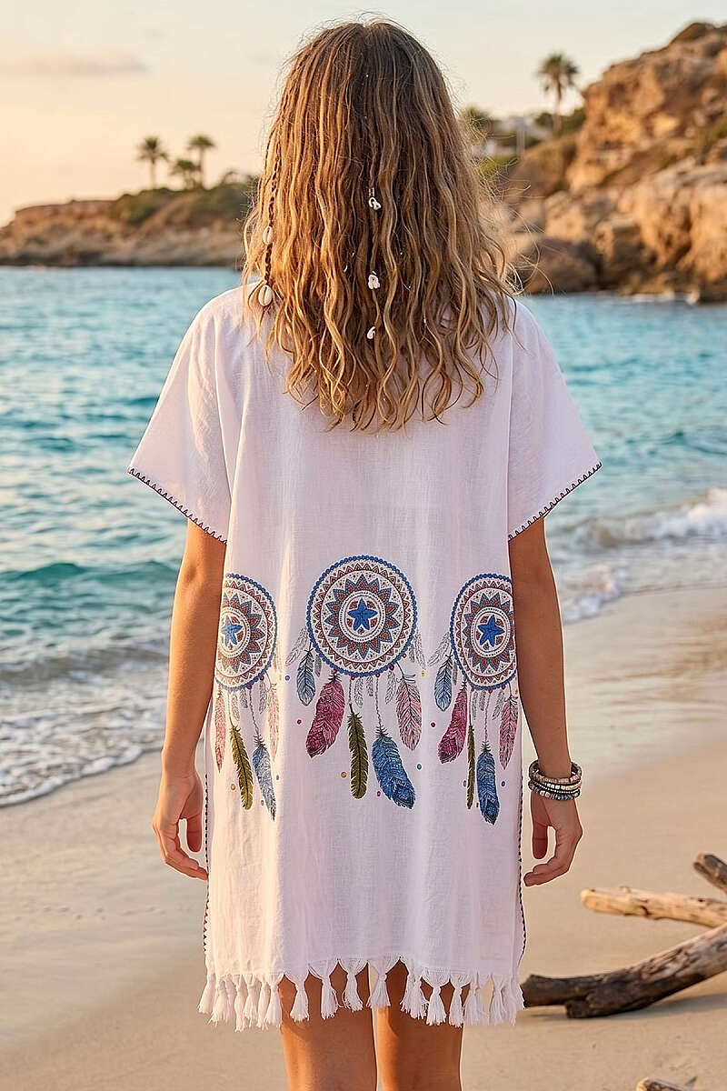 Plaj stilinizi bir üst seviyeye taşıyacak bu Desenli Püskül Detaylı Pareo, hafif ve nefes alan kumaşıyla en sıcak günlerde bile ferah bir kullanım sunar. Mayo veya bikininizin üzerine zahmetsizce geçirebileceğiniz bu parça, plajdan kafeye geçişlerde şıklığınızı tamamlar.