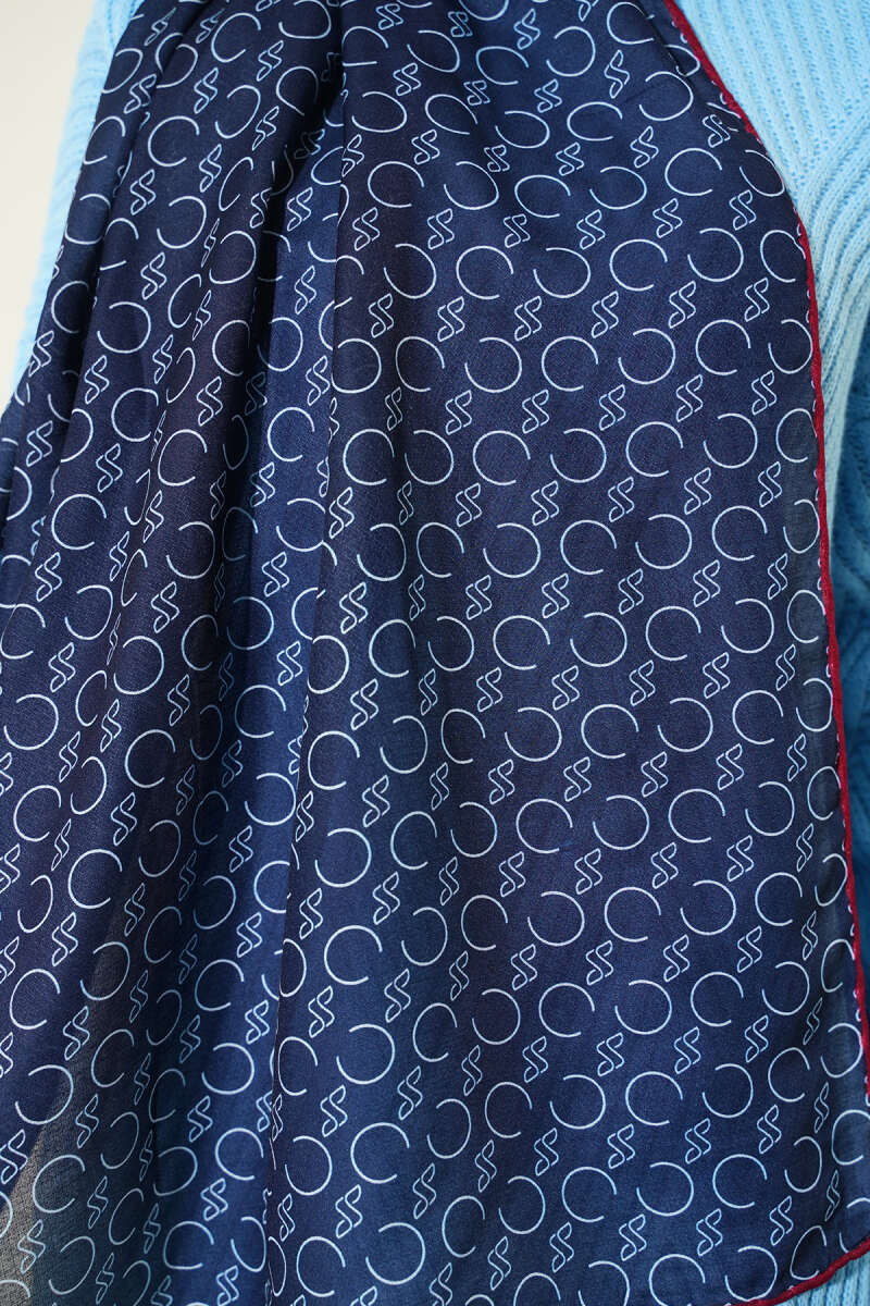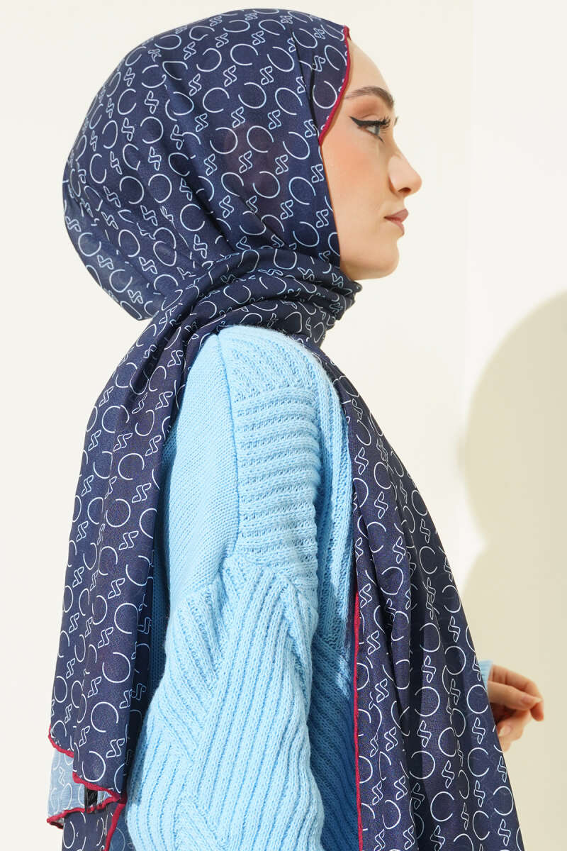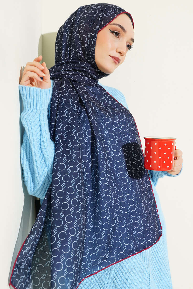 Desenli Ribanalı Demore Şal Lacivert Bordo